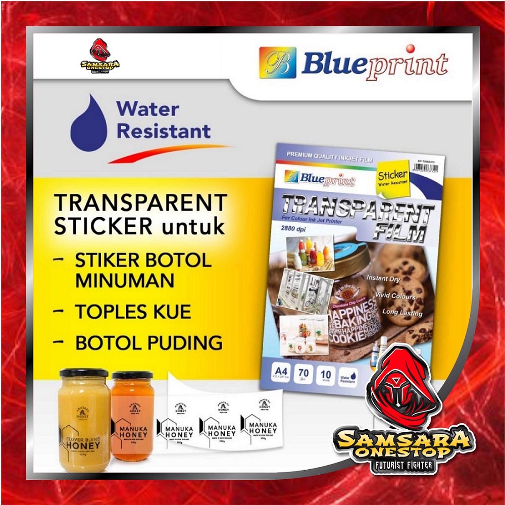 Sticker Transparan Tahan AIR BLUEPRINT Bahan Transparant sticker A4 70 Mikron isi 10