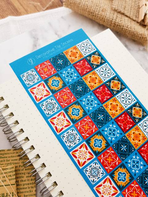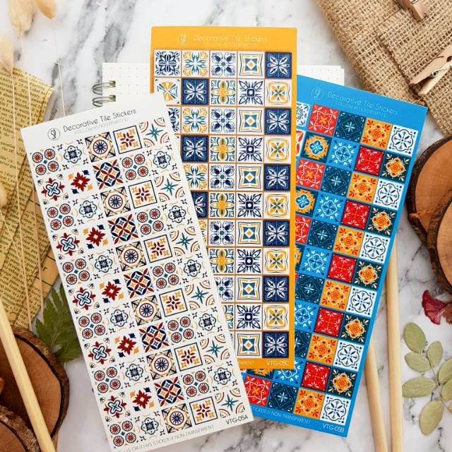 Stiker Vintage Keramik Tile Ukiran Sticker Bujo