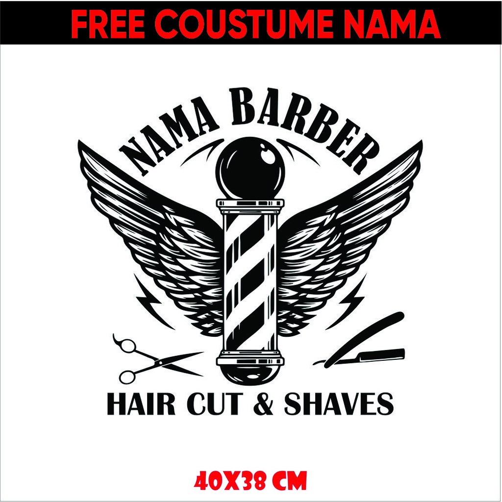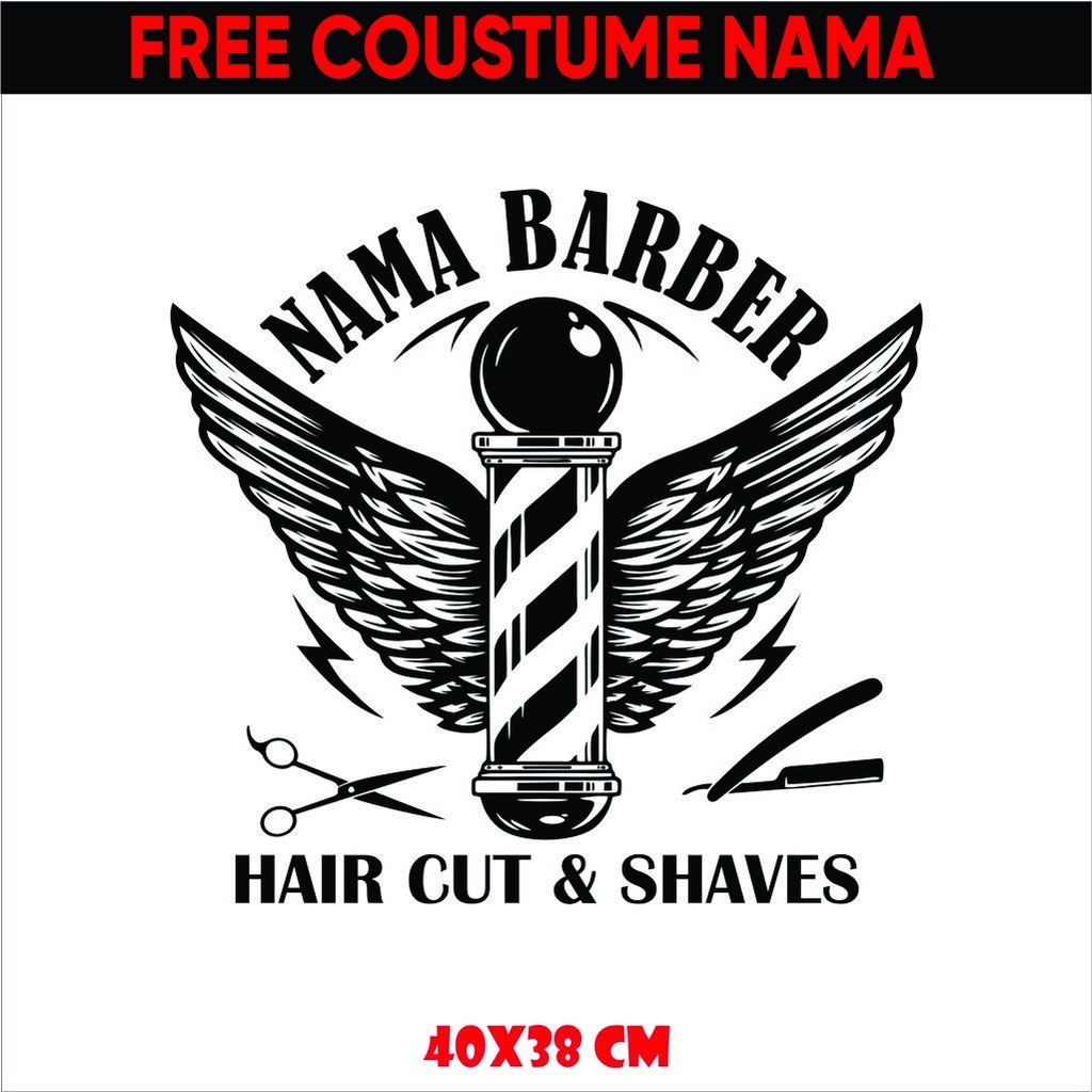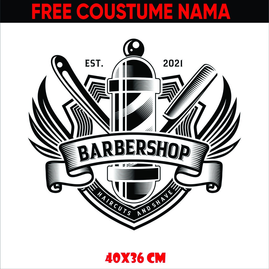 Stiker Wall Cutting Sticker Stiker Dinding Barber Shop Salon Potong Cukur Rambur Vinyl Custom Tembok Kaca sehari jadi Cuting