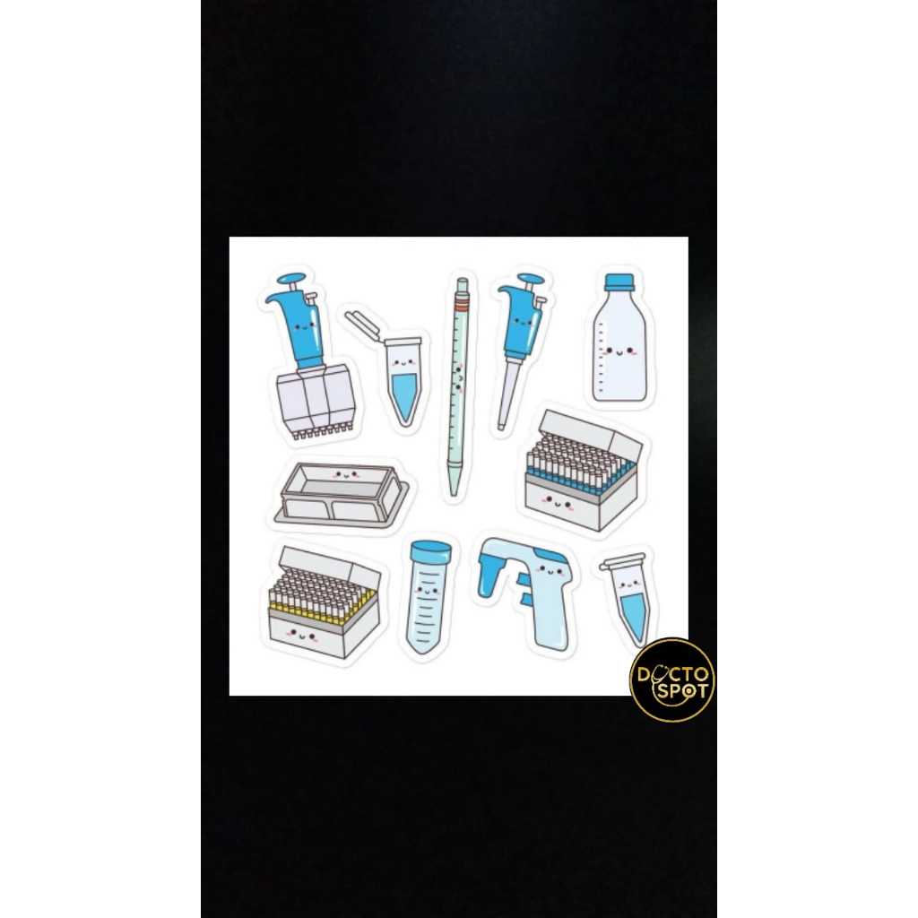 Stiker anti air Lab -+ 10 pcs all in alat-alat Laboratory untuk anak kesehatan mahasiswa kesehatan Laboran Laboratorium Analis Klinis