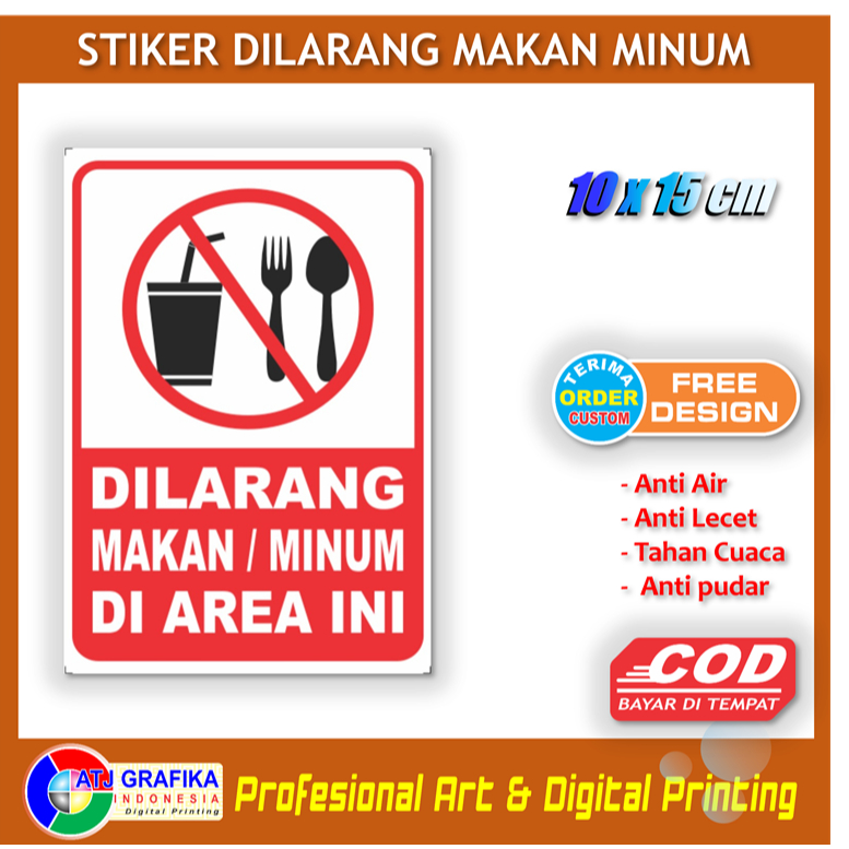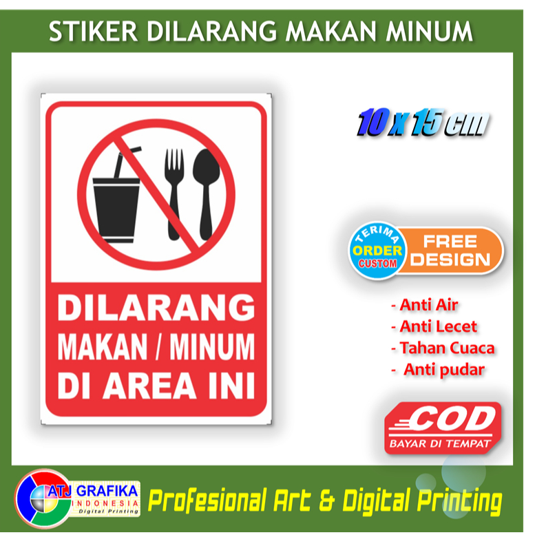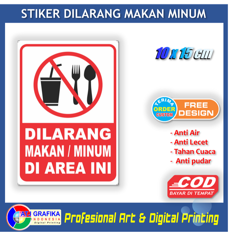 Stiker dilarang makan minum di area ini sticker kebersihan lingkungan anti kotor rumah toko kantor