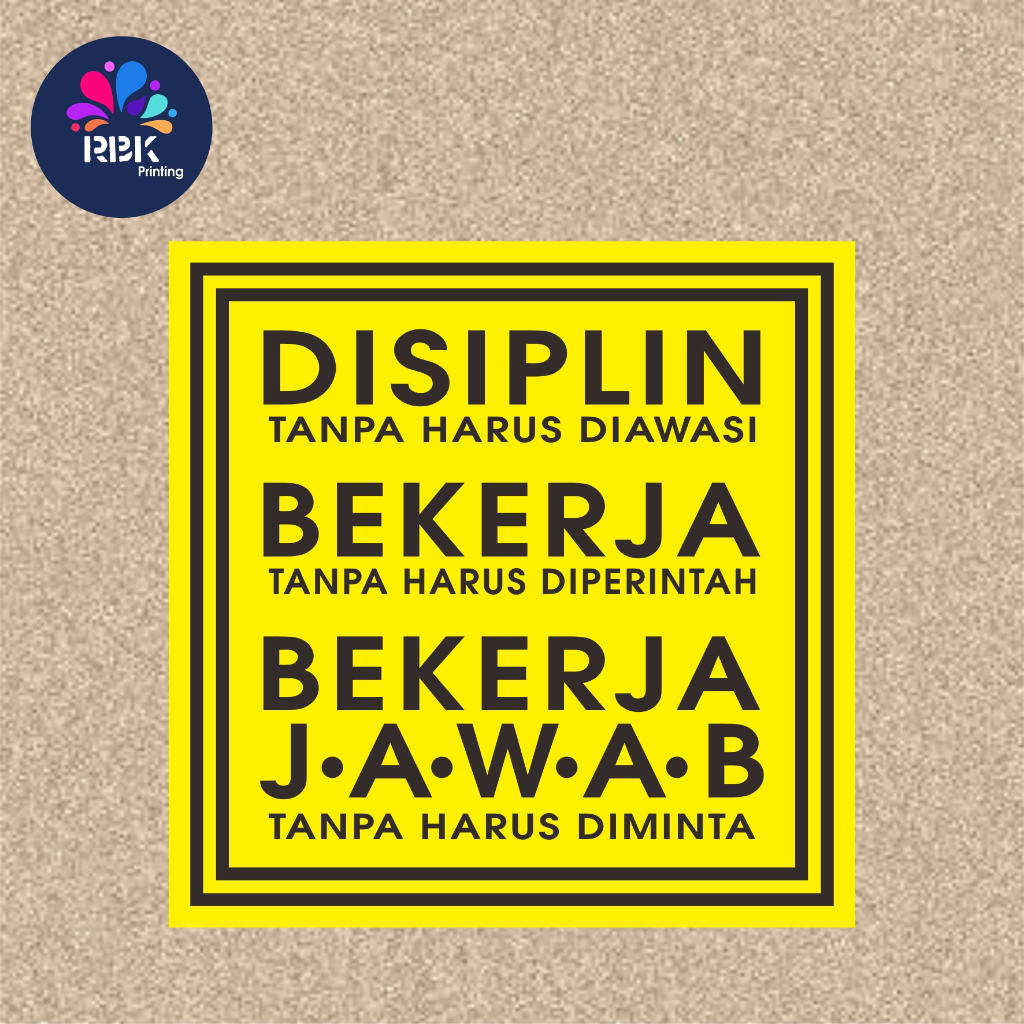 Stiker disiplin tanpa harus diawasi bekerja tanpa harus diperintah tanggung jawab tanpa harus diminta - kerja giat - kata kata motiivasi Kantor