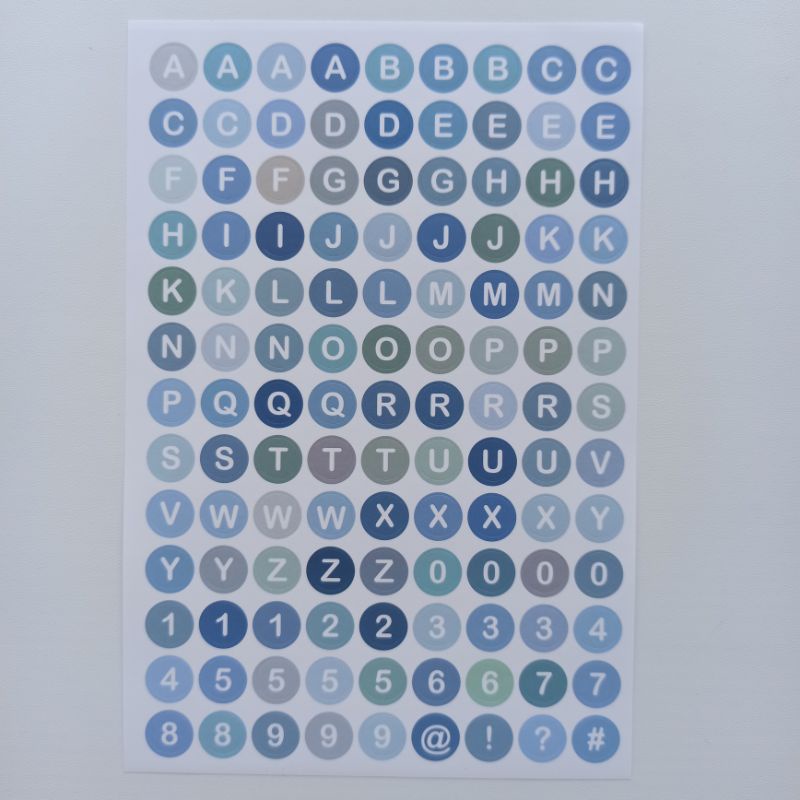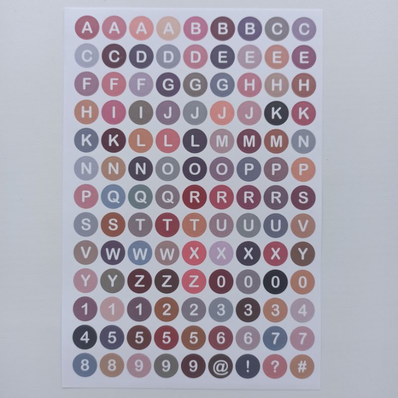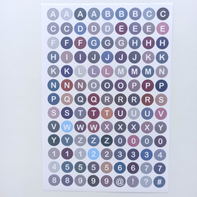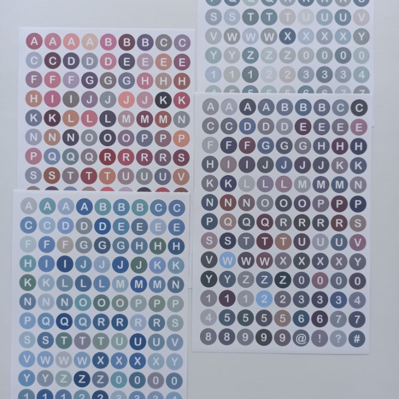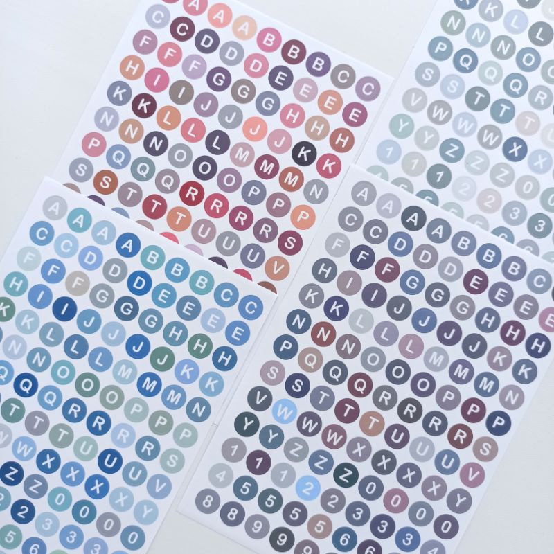 Stiker huruf alfabet angka warna warni gradasi