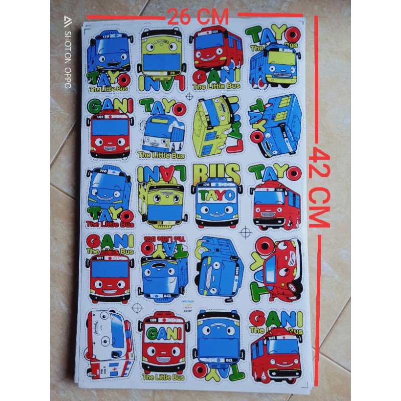 Stiker lembaran TAYO ukuran 26x42cm isi 20 stiker