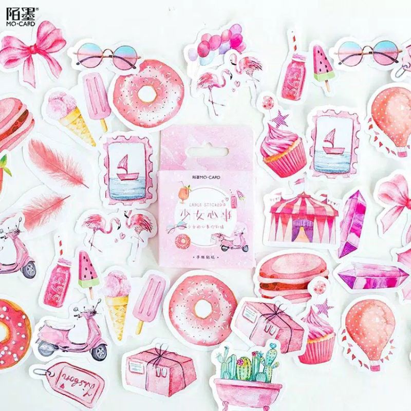 Stiker lucu gambar/ Aesthetic sticker / stiker aestetik 46 biji , stiker untuk journal, diary