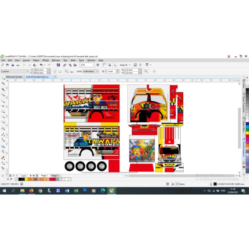 Stiker miniatur truk oleng dan bus