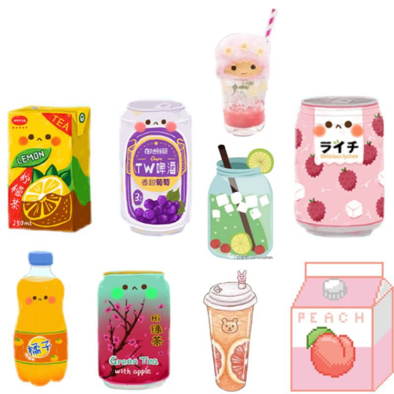 Stiker minuman lucu ( 1 pck isi 30 pcs ) , untuk hiasan scrapbook dan olshop