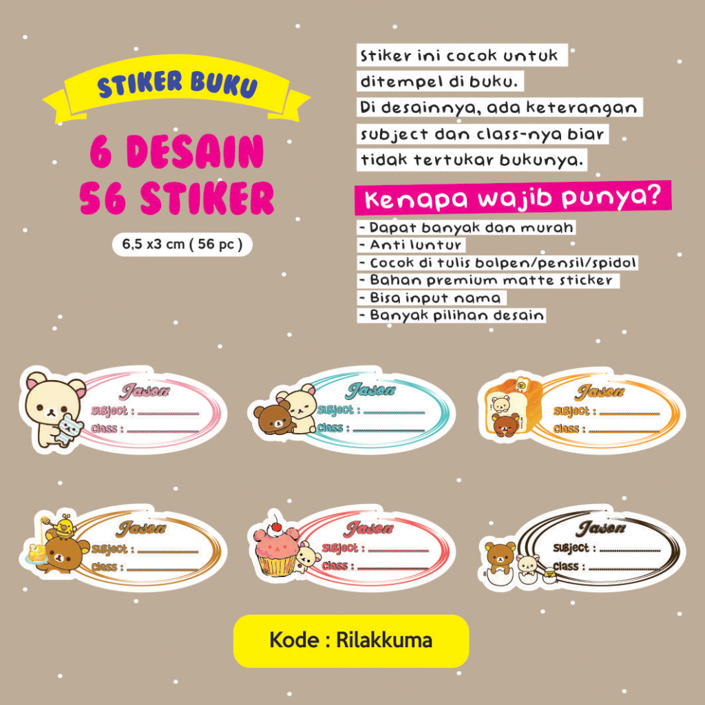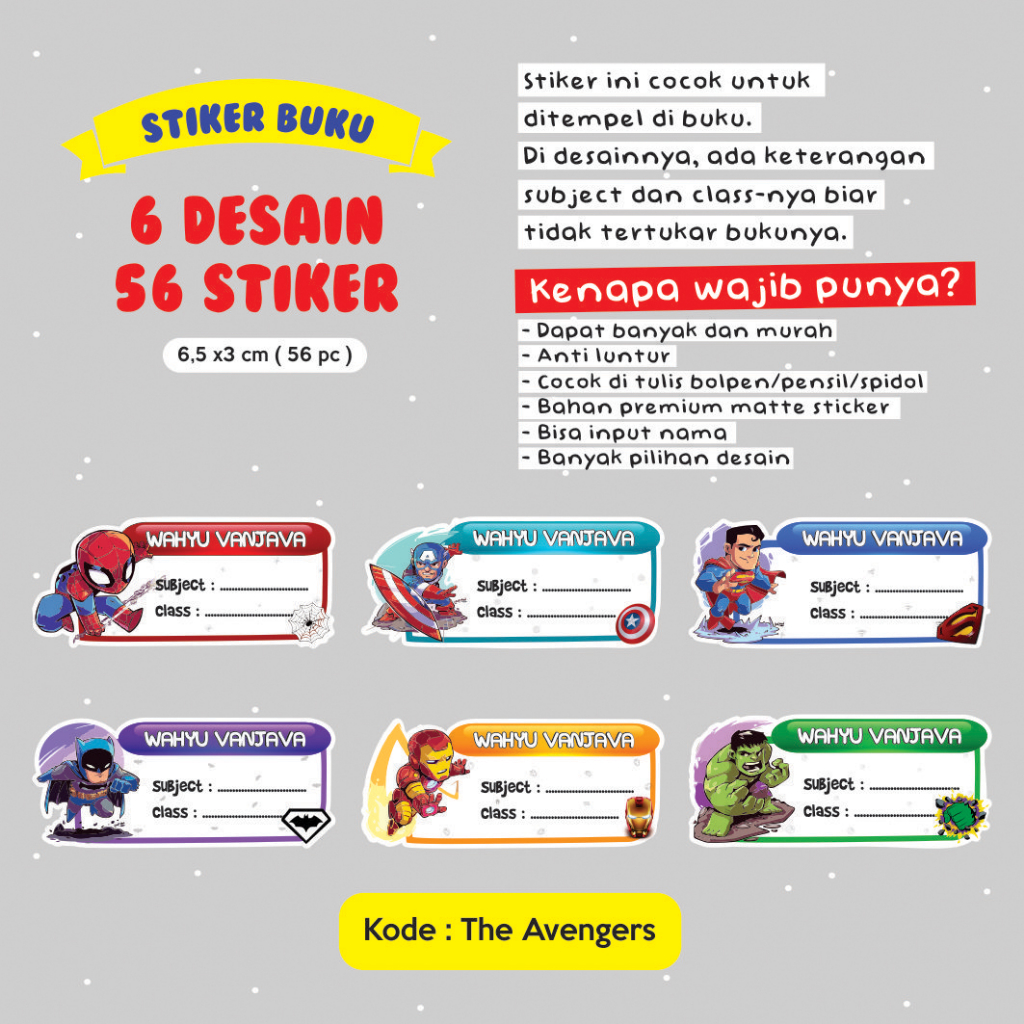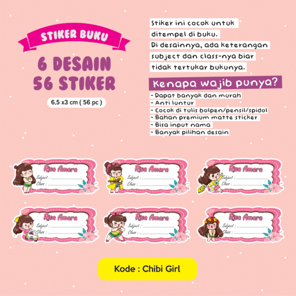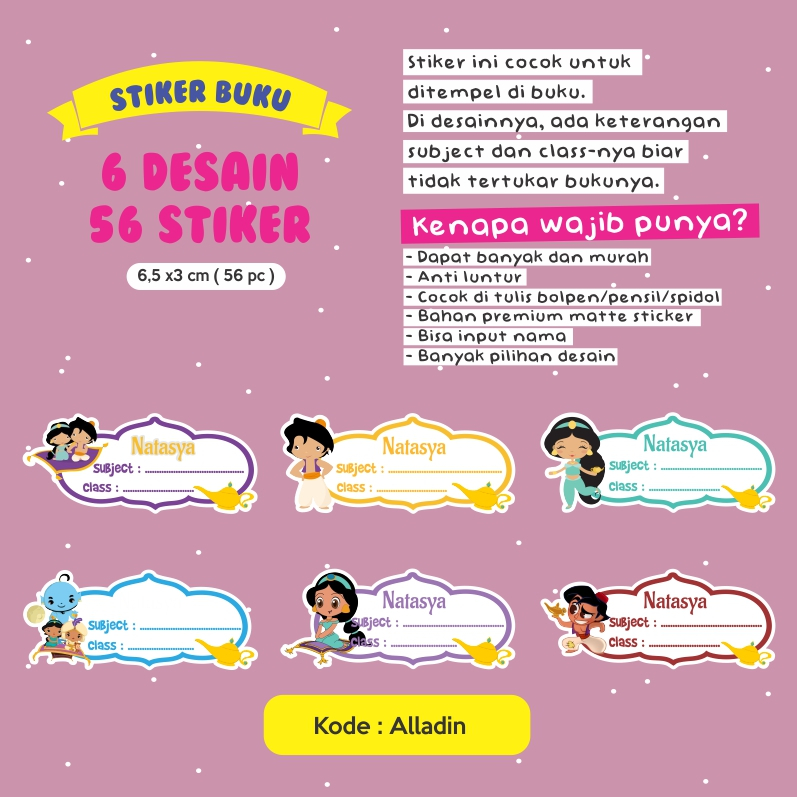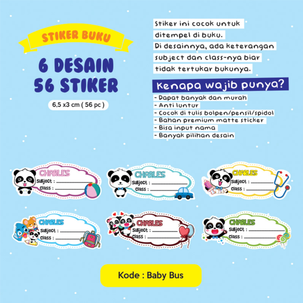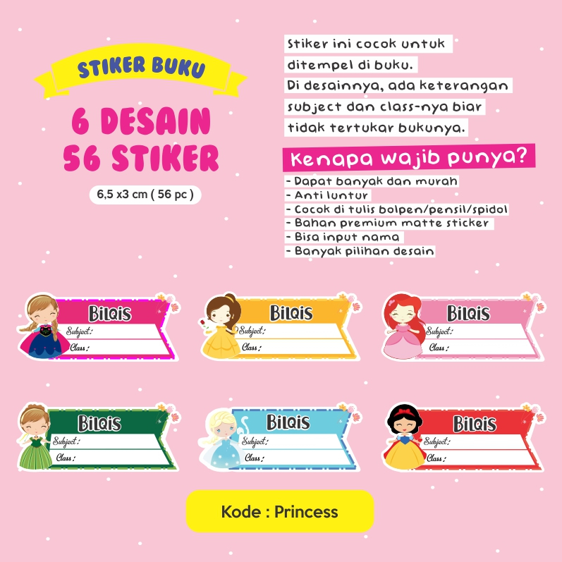 Stiker nama buku / stiker custom nama buku sekolah anak / stiker buku pelajaran
