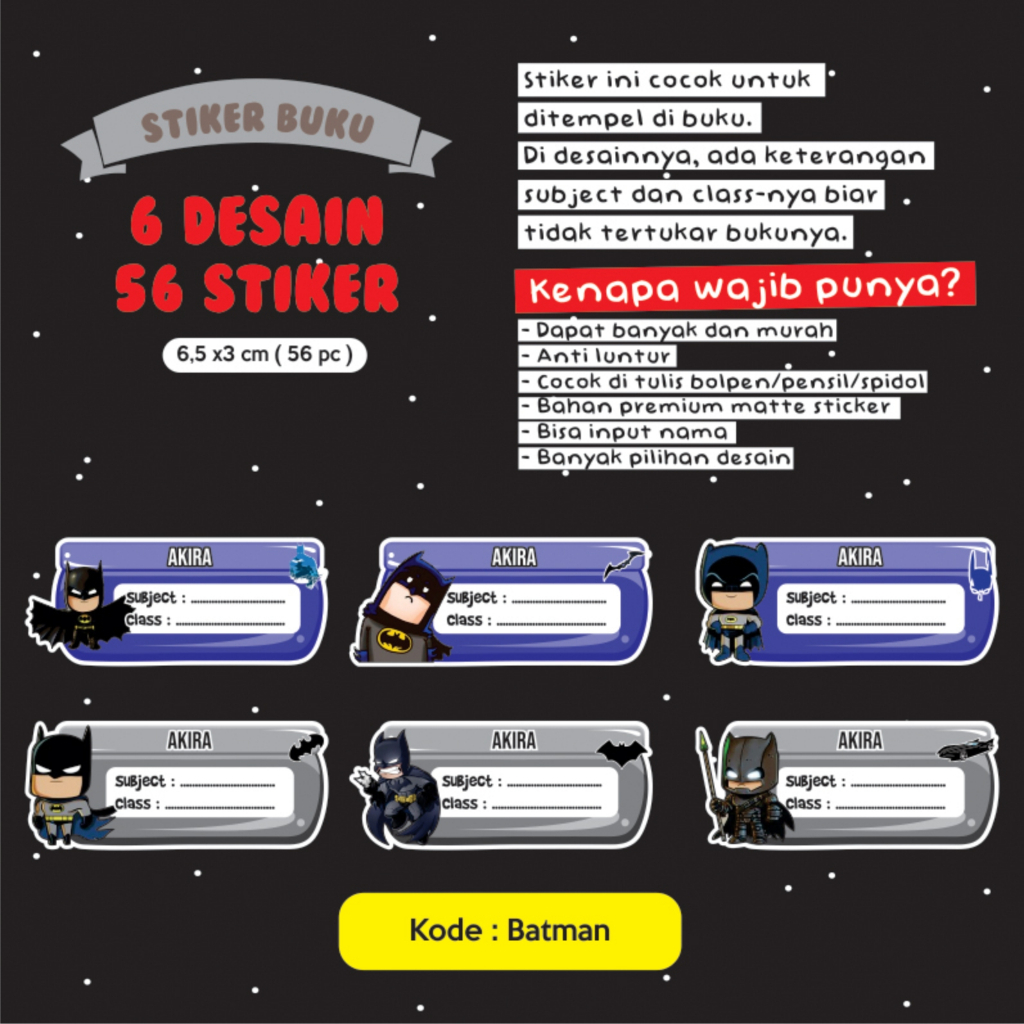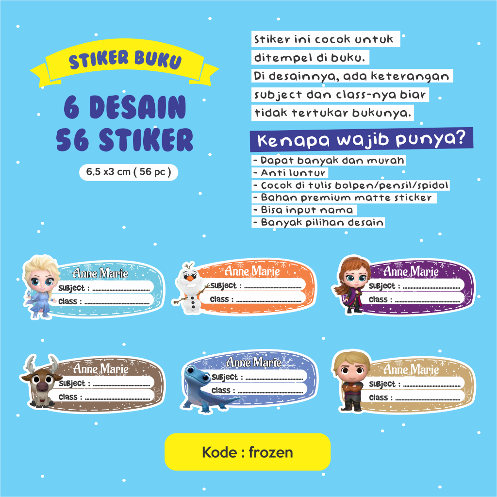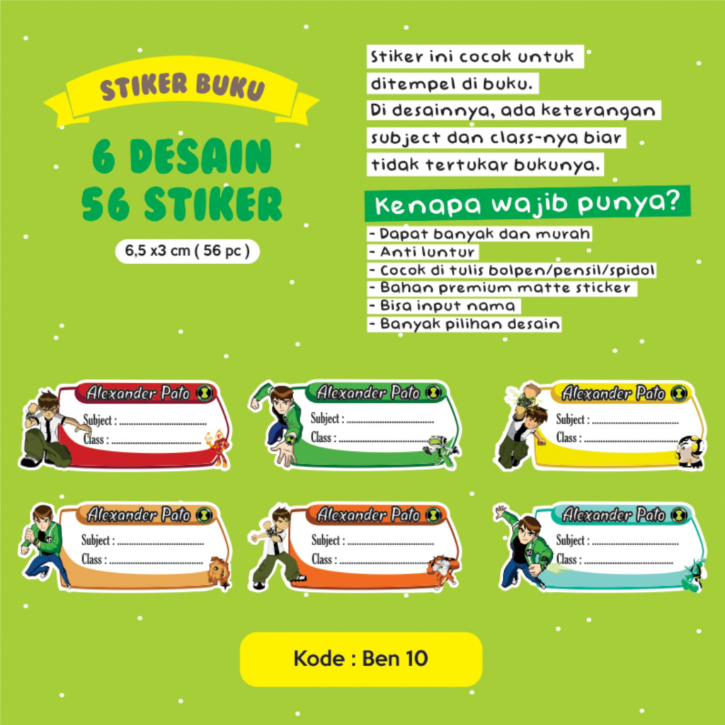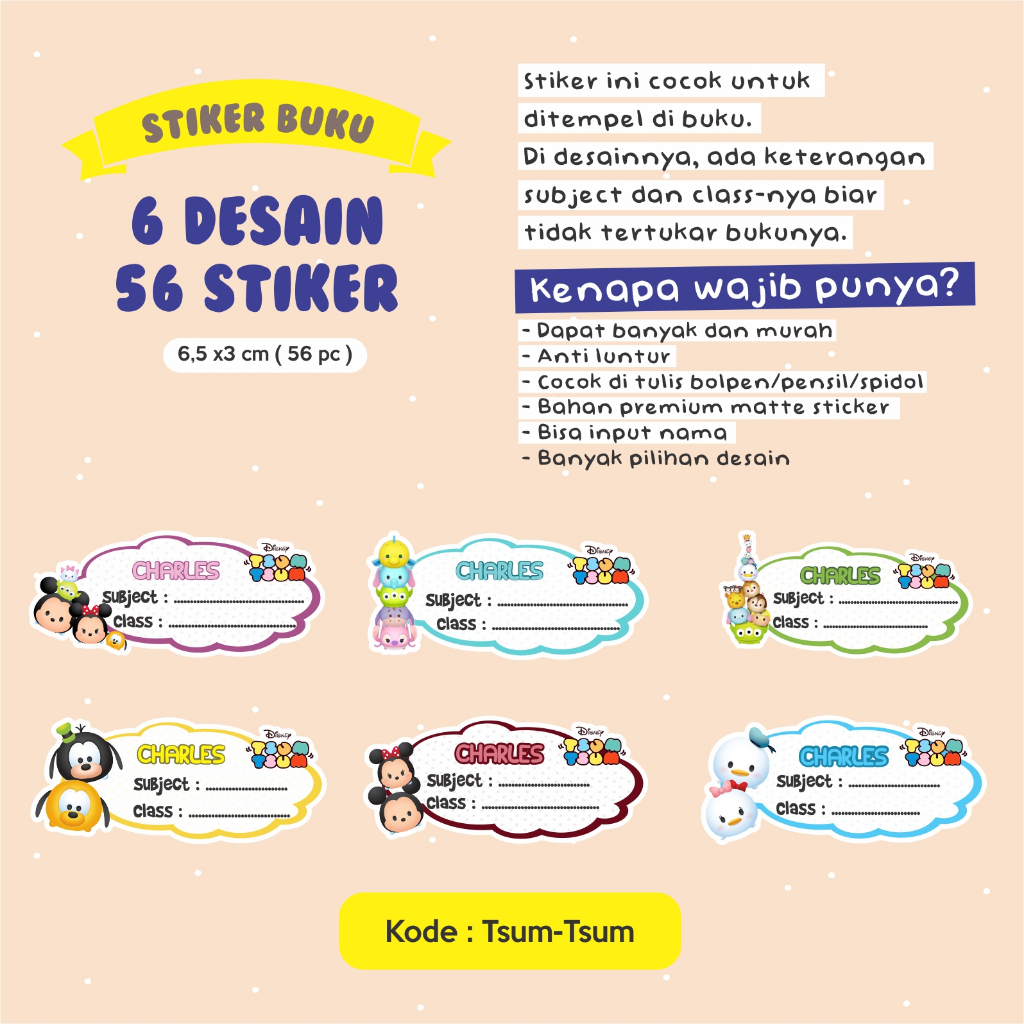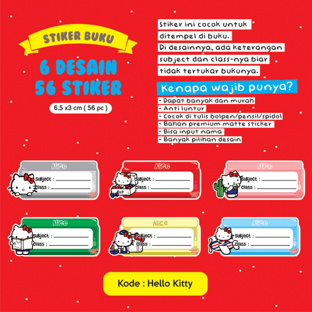 Stiker nama buku / stiker custom nama buku sekolah anak / stiker buku pelajaran