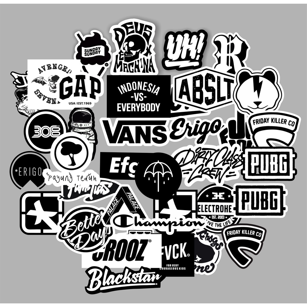 Stiker paket isi 30 Sticker Brand Distro Case Phone band Grafiti white Logo Basic Aesthetic Pop Art helm tumblr dinding laptop tempel Local brand decal Striping