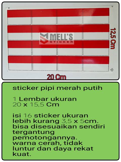 Stiker pipi merah putih lembaran isi banyak