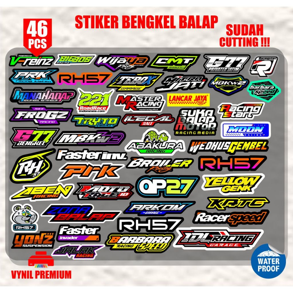 Stiker racing bengkel balap isi 46pcs anti air sudah cutting
