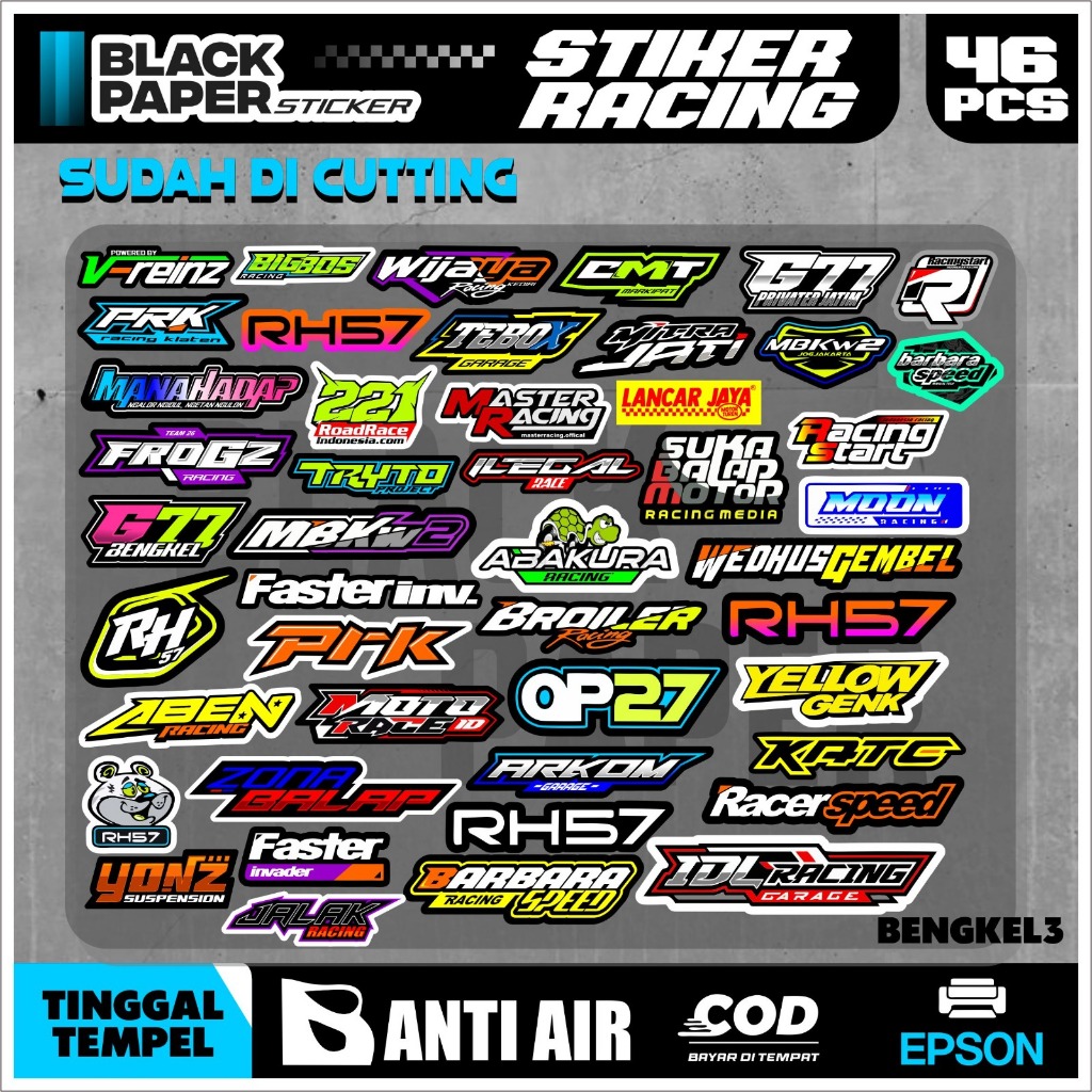 Stiker sponsor racing bengkel balap isi 50 Lembar stiker kece stiker aesthetic