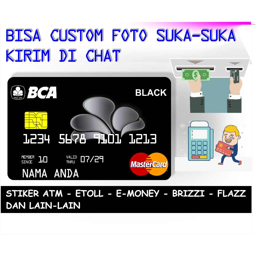Stiker sticker Skin Kartu Atm Black card Bca e-money etoll brizzi flazz bca special hologram