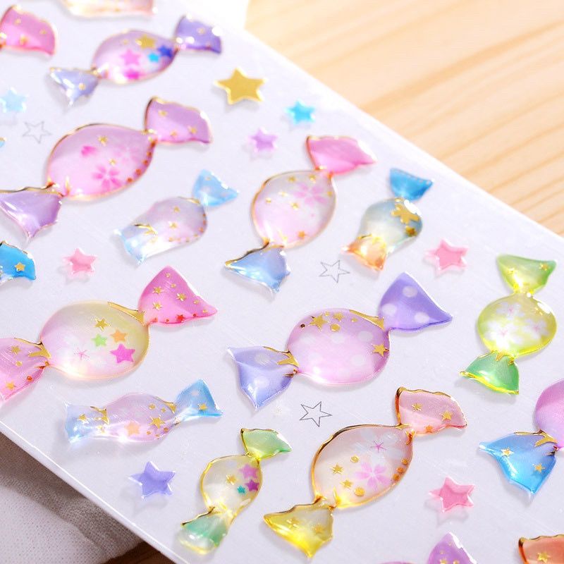 Stiker timbul 3D korea sticker glitter magic label sticker transparent
