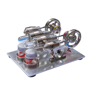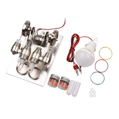 Stirling Engine Kit Dual Engine Generator Hot Air Motor Model Physical Generator Model with Flywheel Design Science Experiment