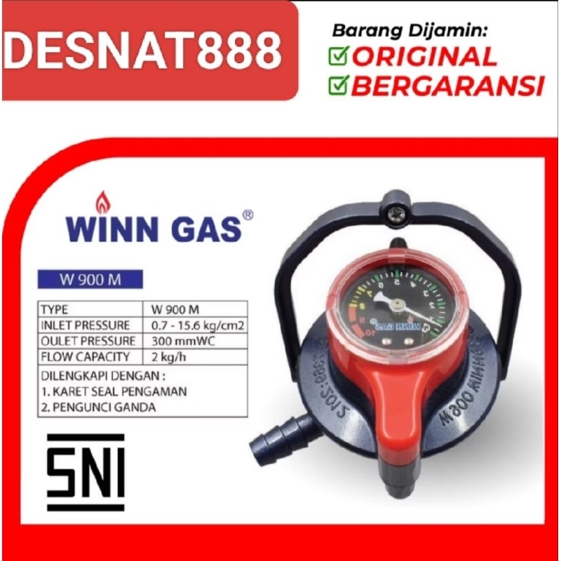 WINN GAS Regulator W-900 M Tekanan Rendah dengan Pengunci Ganda +Meter