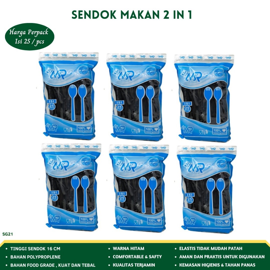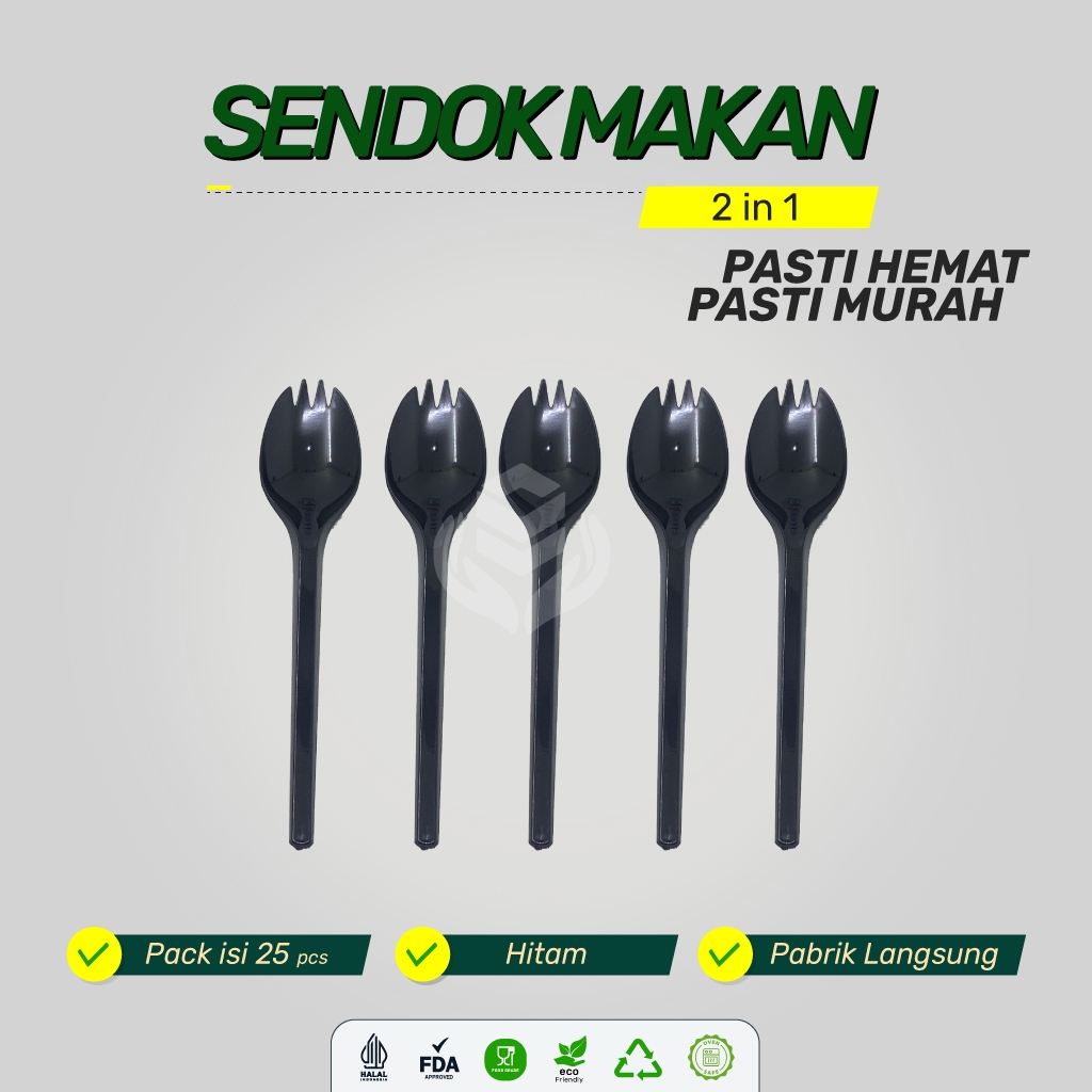 (25 pcs) Spork 2 in 1 Steril Tebal & Kuat Premium Sendok Garpu Gabung 2in1 Sudah Dibungkus Transparan