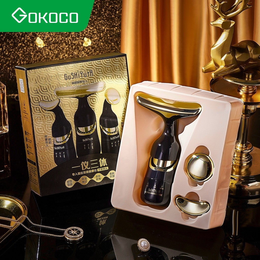 GOKOCO 3 IN 1 Massager Alat Pijat Getar Multifungsi Untuk Kecantikan electric massage introducer massager essence Pengenalan Krim Wajah Leher Wajah Mata Pijat Facial