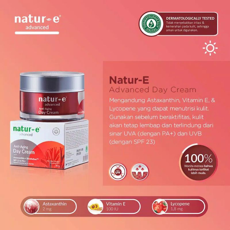 natur-E advanced anti aging day cream pelembab siang cream siang untuk mengurangi garis halus kerutan dan flek hitam (suncreen)