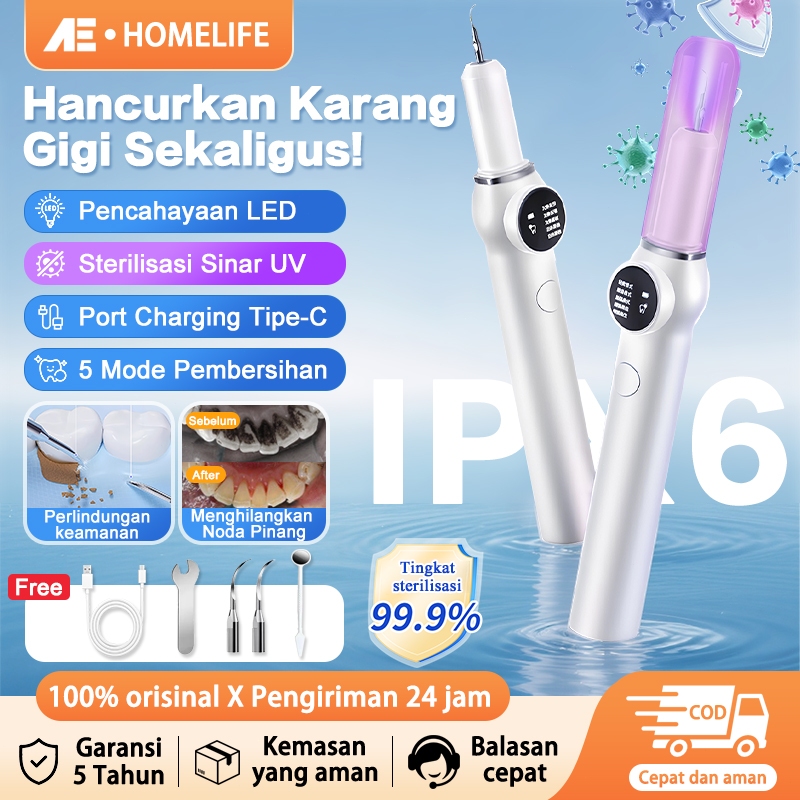 AE Pembersih Karang Gigi Alat Ultrasonic Scaling 1 Set 6 Modes With Light Portable Electric
