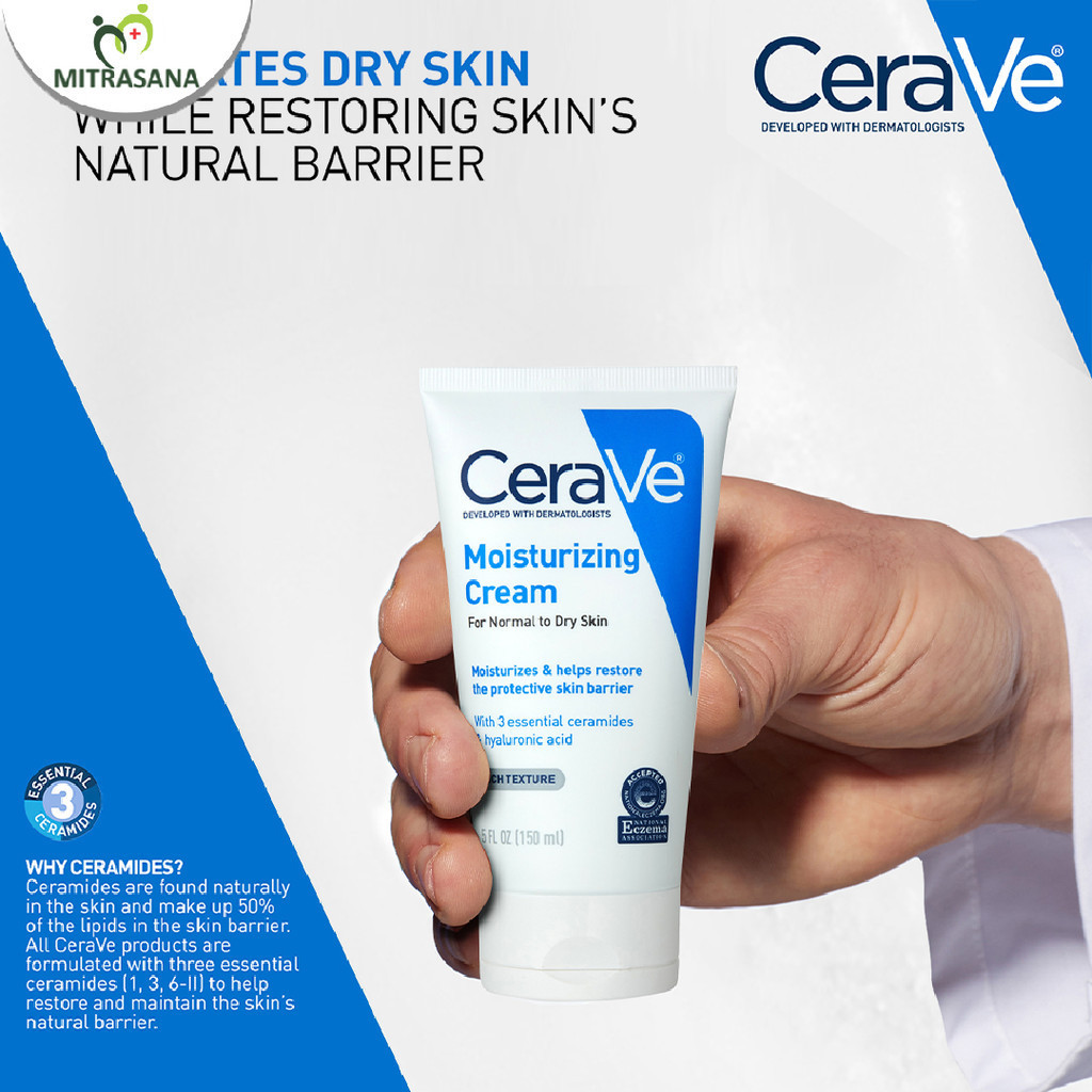 Cerave Daily Moisturizing Cream – Skin Barrier Repair Moisturizer With Ceramide For Normal To Dry Skin [Krim Pelembap Untuk Kulit Kering] 50mL