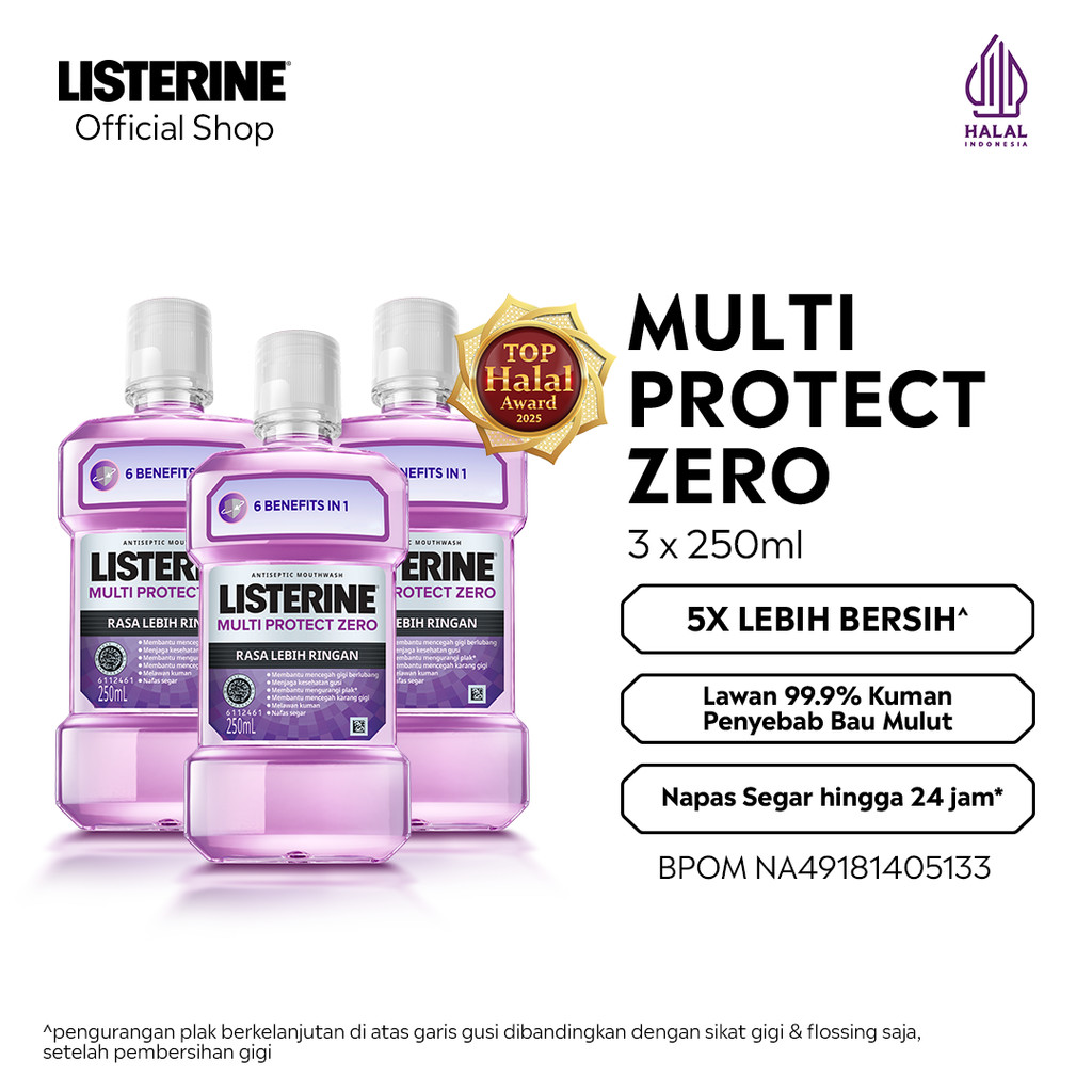LISTERINE Multi Protect Zero Antiseptic Mouthwash /Obat Kumur Antiseptik 250 ml - No Alcohol - Isi 3