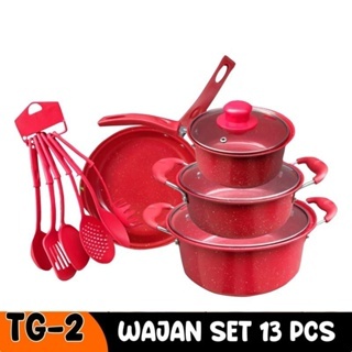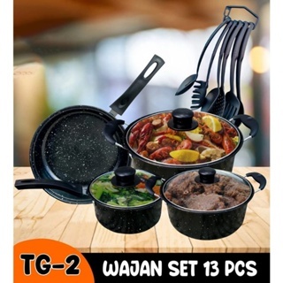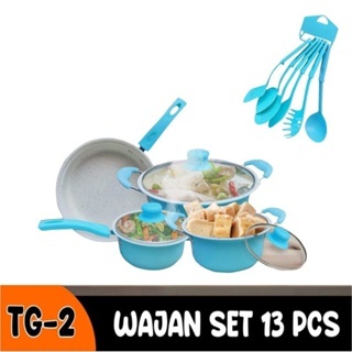 COD 2 KG PANCI 13 PCS COOKWARE SET PANCI SET SERBAGUNA TEFLON MARBLE COOKWARE SET TUTUP KACA ANTI LENGKET PANCI SET WAJAN PENGGORENGAN SPATULA SET ISI 13 PCS 1 SET FRYPAN