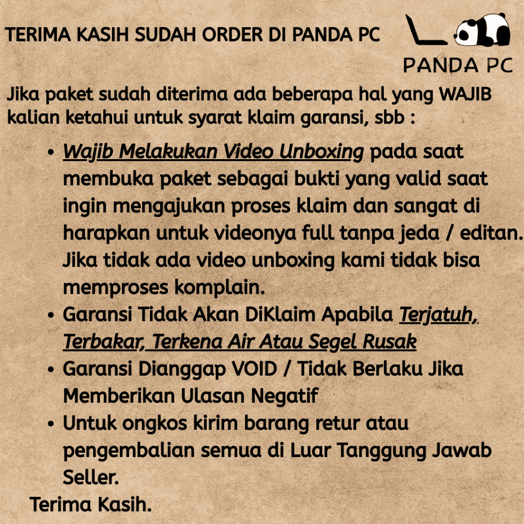 Garansi tiba 14 Apr