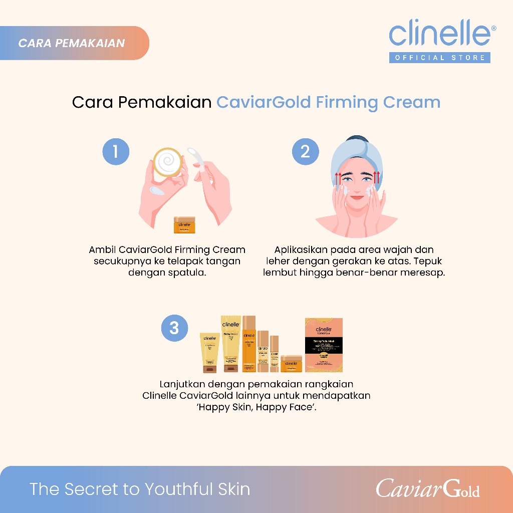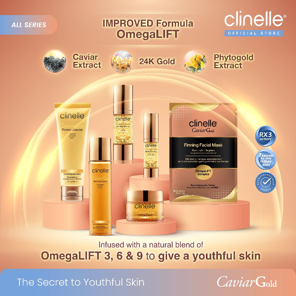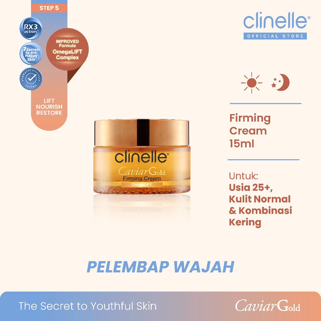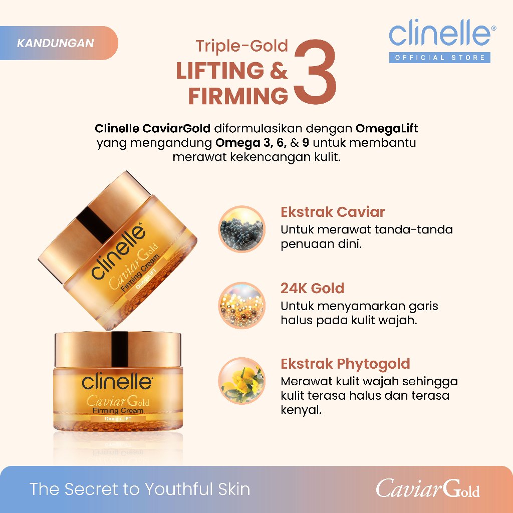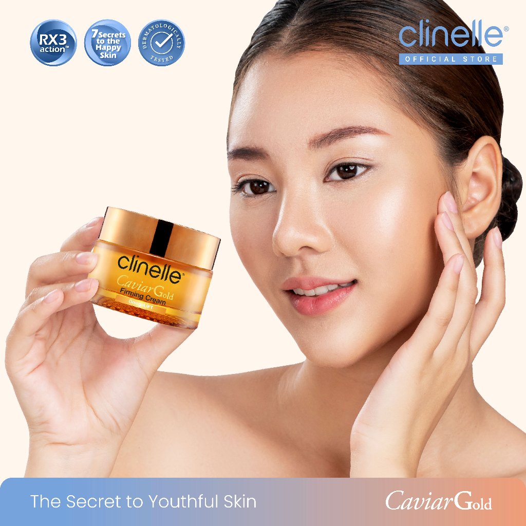 (Best Seller) CLINELLE Caviar Gold Firming Cream 40 ml - Moisturizer Pelembap Wajah Glowing / Anti Aging / Kering Menyamarkan Garis Halus dan Kerutan [ Caviar Extract | 24K Gold | Phytogold Extract ]