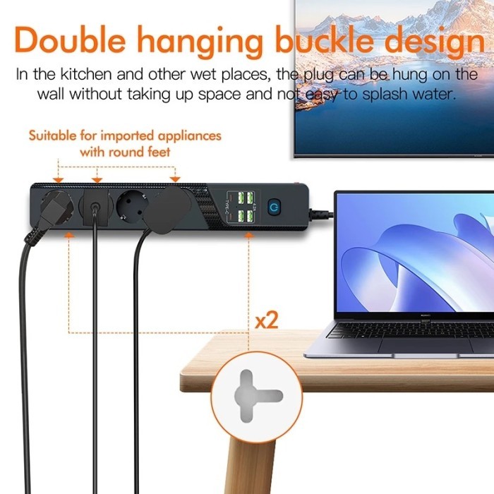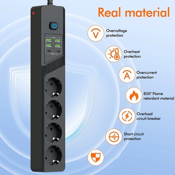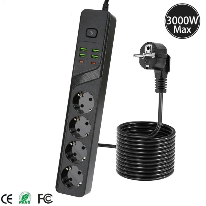 Stop Kontak 4 Lubang USB Type C EU Plug 10A 110 - 250 V AC / 3000 W