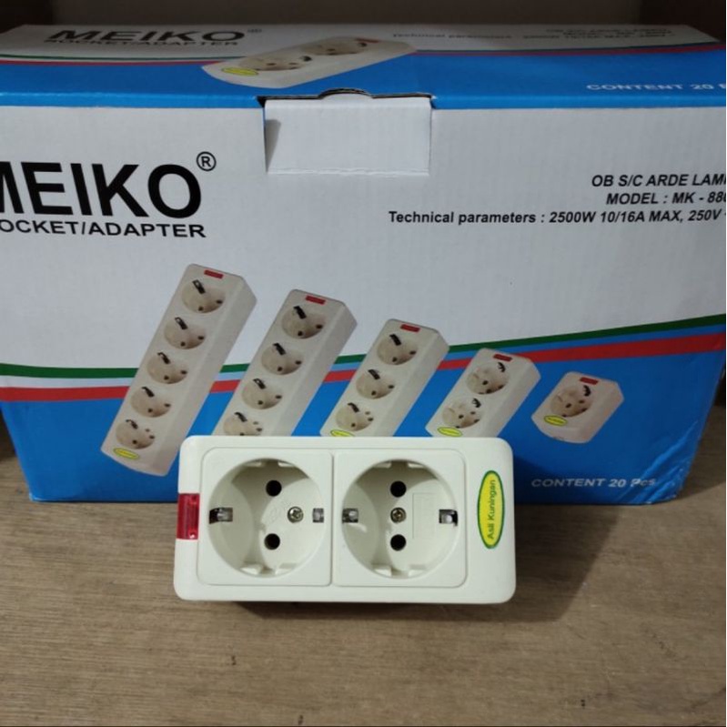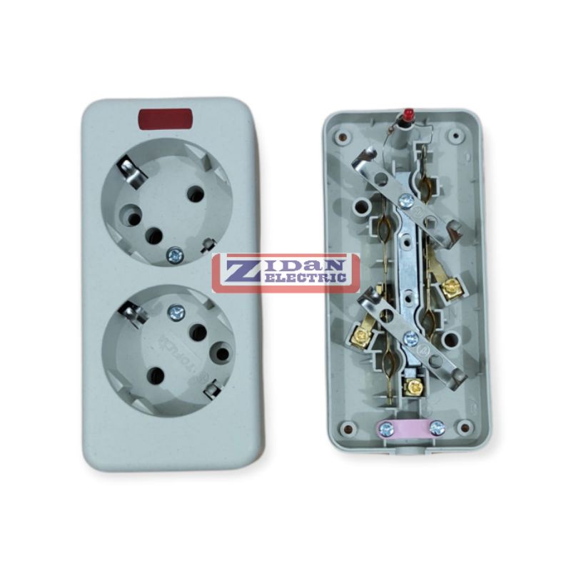 Stop Kontak Arde 2 Lubang Terminal Kuningan Lampu Indikator Meiko Tofuda