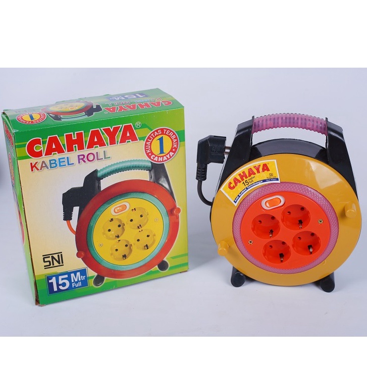 Stop Kontak Kabel Roll 4 Lulang 10M/15M Dengan Switch / Cabel Roll Stop Kontak SNI / Merk CAHAYA