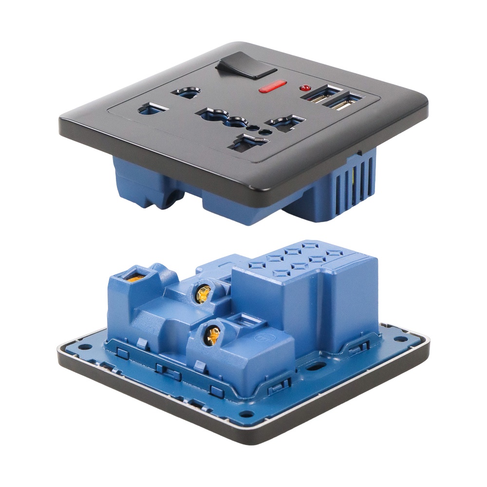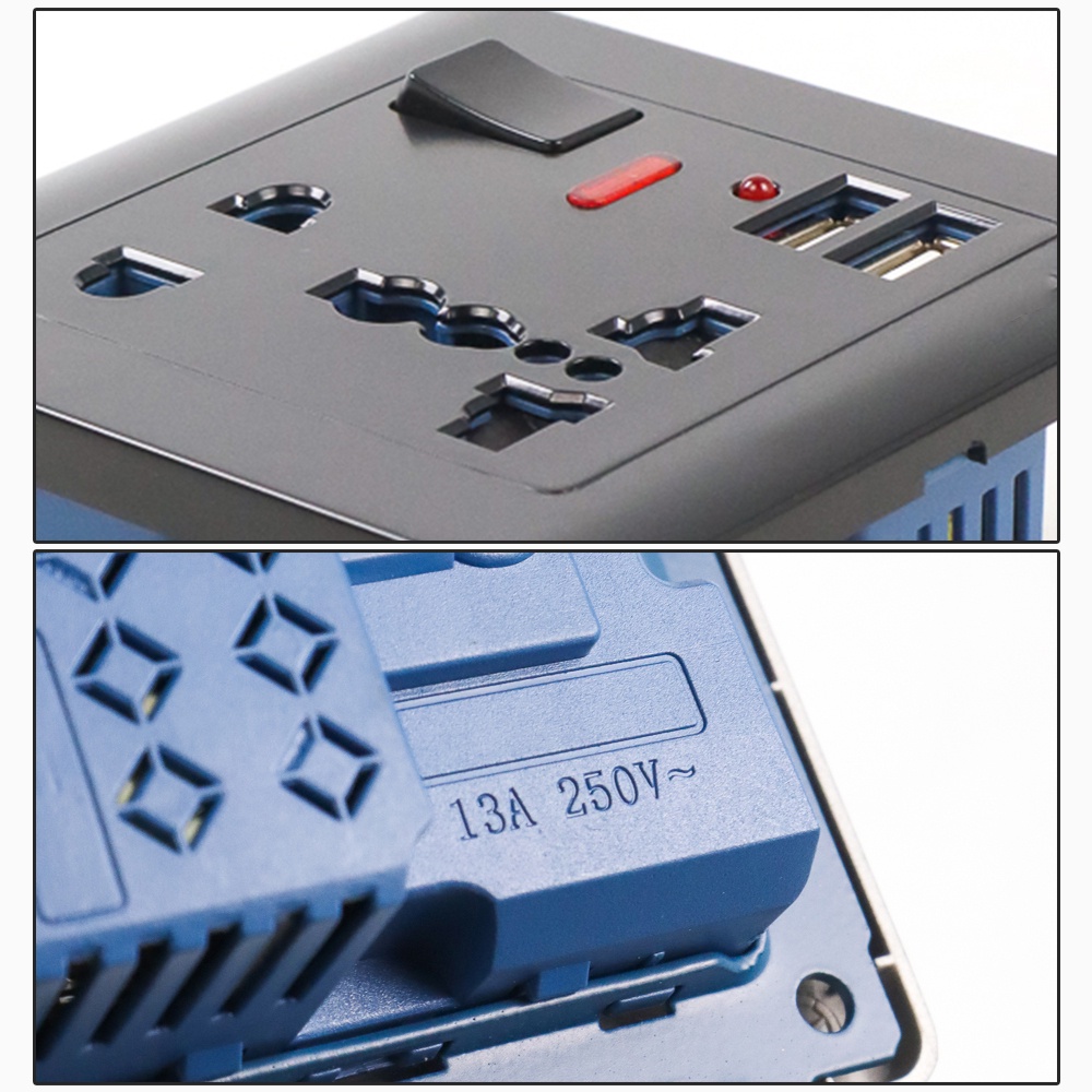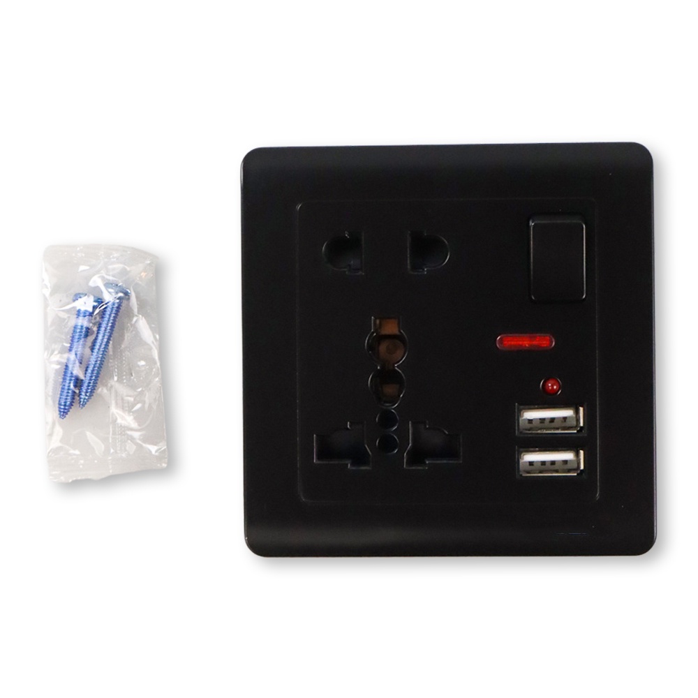 Stop Kontak Universal UK EU US 5 On Off Switch - Colokan Listrik Port Universal dengan USB Cas - Stop Kontak Mewah dengan USB Charger