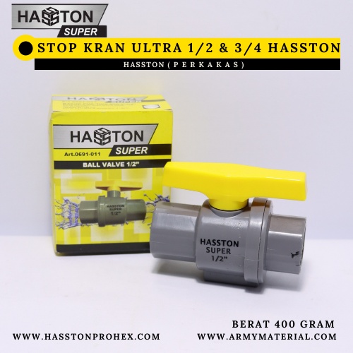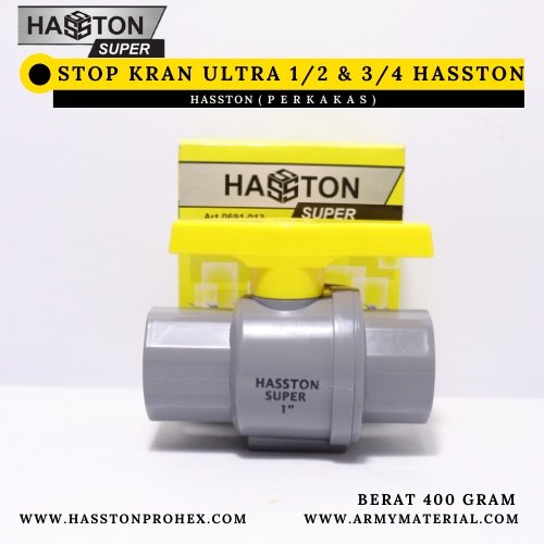 Stop Kran Air Ultra Pvc Semua Ukuran Hasston Original / Kran Air Pvc / Stop Kran Pvc / Kran Pvc / Ball Valve / Ball Velve / Kran Kuningan / Kran Besi / Kran Taman / Stop Kran Air / Kran Air Dapur / Kran Angsa / Kran Engkol / Kran Baling Terlaris