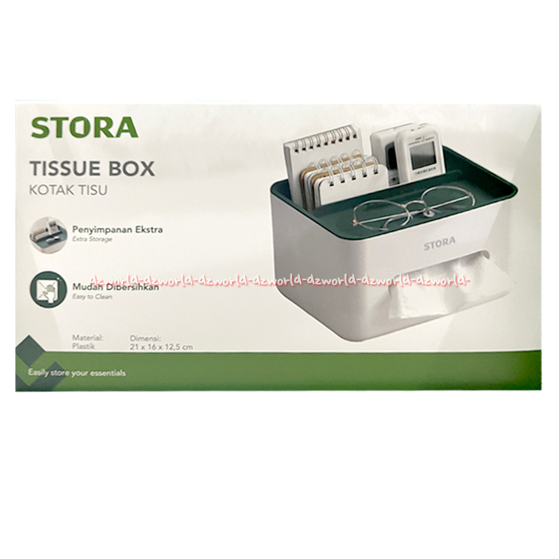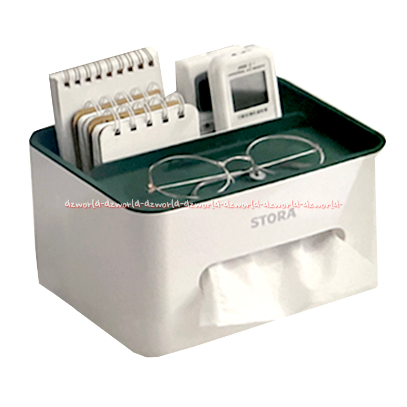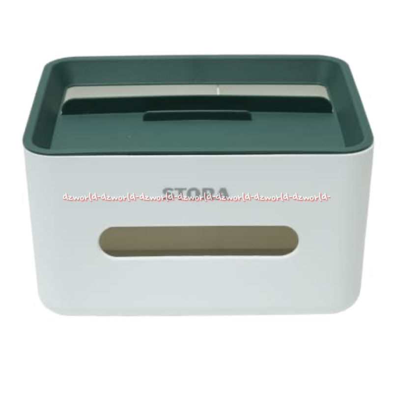 Stora Tissue 21cm Box Tempat Kotak Tissue Putih Rak Penyimpanan Extra 21cm Warna Hijau Dan Biru Dengan Tutup