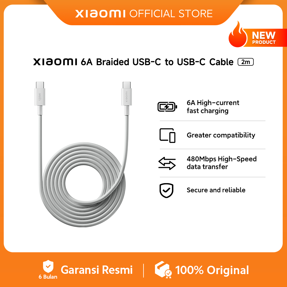 Xiaomi 6A Braided USB-C to USB-C Cable | 6A High-current fast charging | Greater compatibility | 480Mbps High-Speed data transfer | Secure and reliable [Official Store]