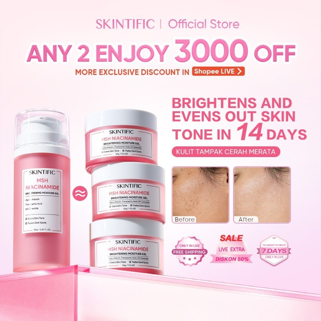 [SKINTIFIC AUTHORIZED] MSH Niacinamide Brightening Moisturizer Gel 30g | Cream Pemutih Wajah Calming Whitening Dark Spot Pelembab Wajah Pemutih Wajah Facial Moisturizer Day Cream Night Cream Skincare BPOM Niacinamide Skincare Facial with MSH