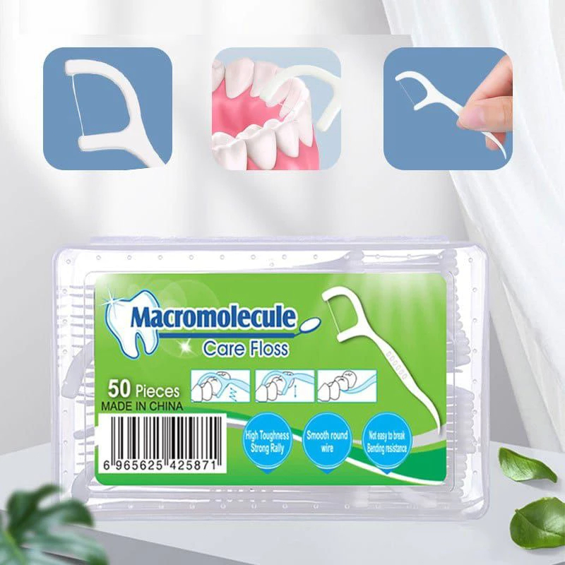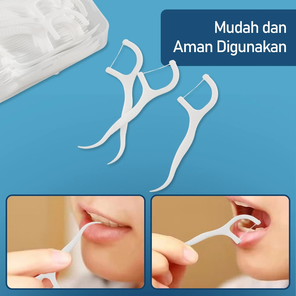 TUSUKAN GIGI BENANG 2IN1 ISI 50 PCS - PEMBERSIH SELA GIGI BENANG / DENTAL FLOSS