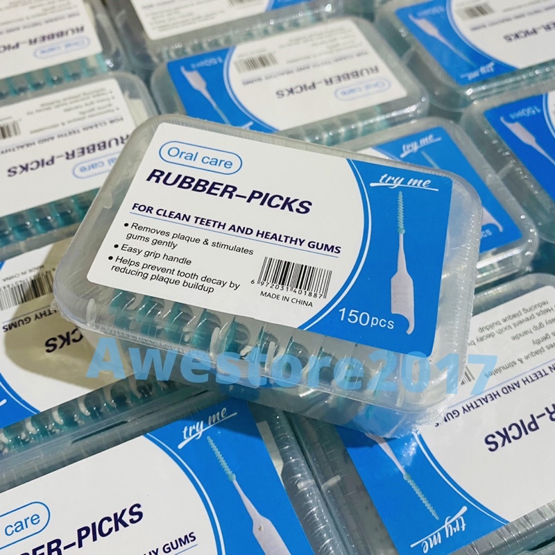 150 Pcs Rubber Tip Interdental Brush Soft Pick Tusuk Gigi Karet Behel Ortho Dental Floss Y Bentuk
