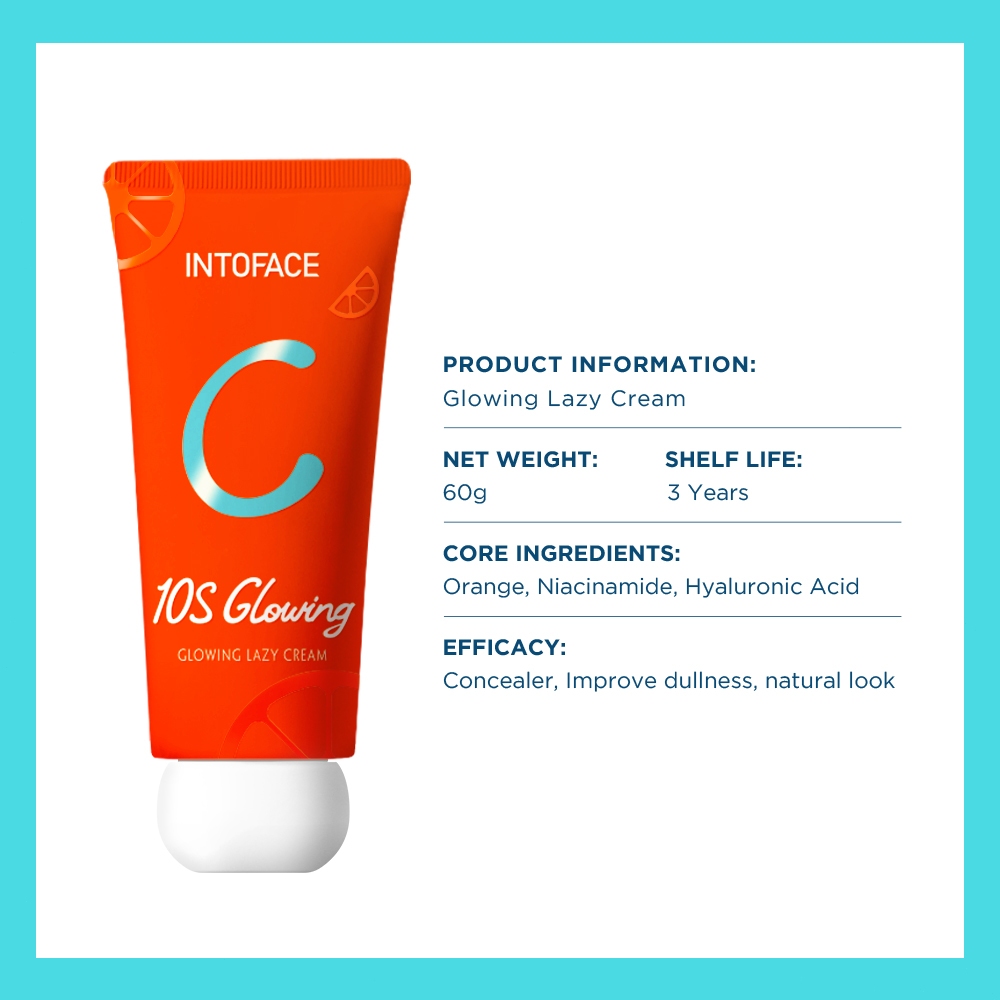 INTOFACE VC Glowing Lazy Cream Krim Pemutih Wajah Moisturizer 30g Niacinamide Gluta Pelembab Wajah Day Cream Night Cream Facial Skincare