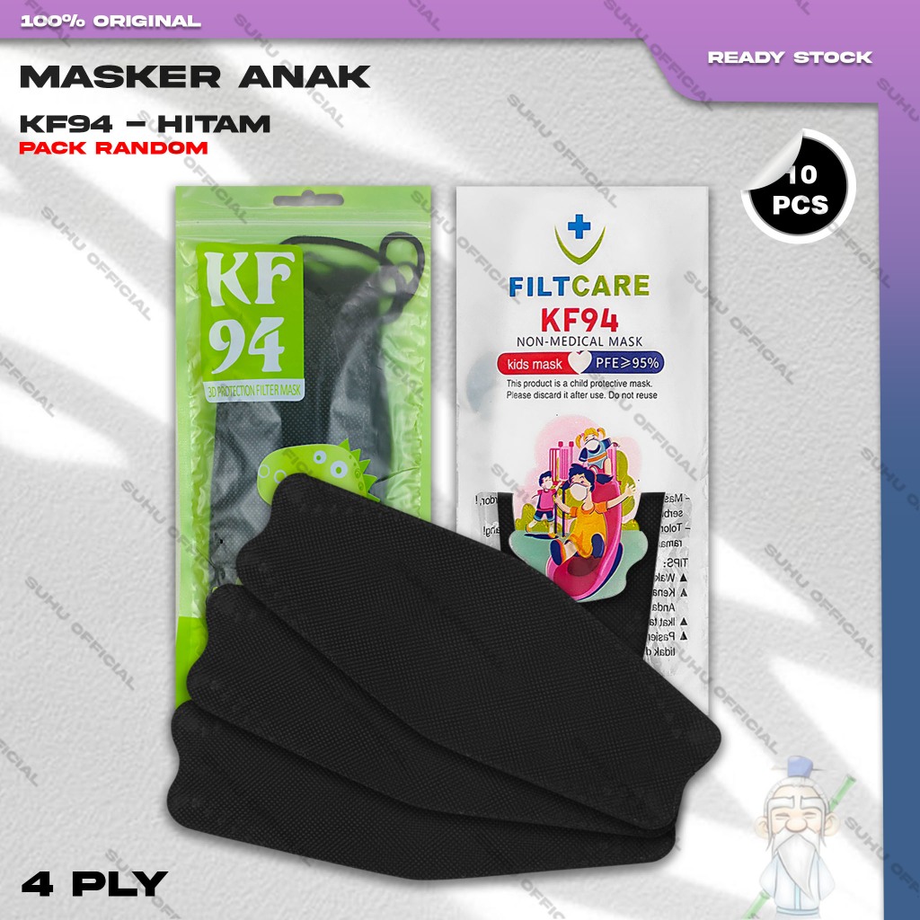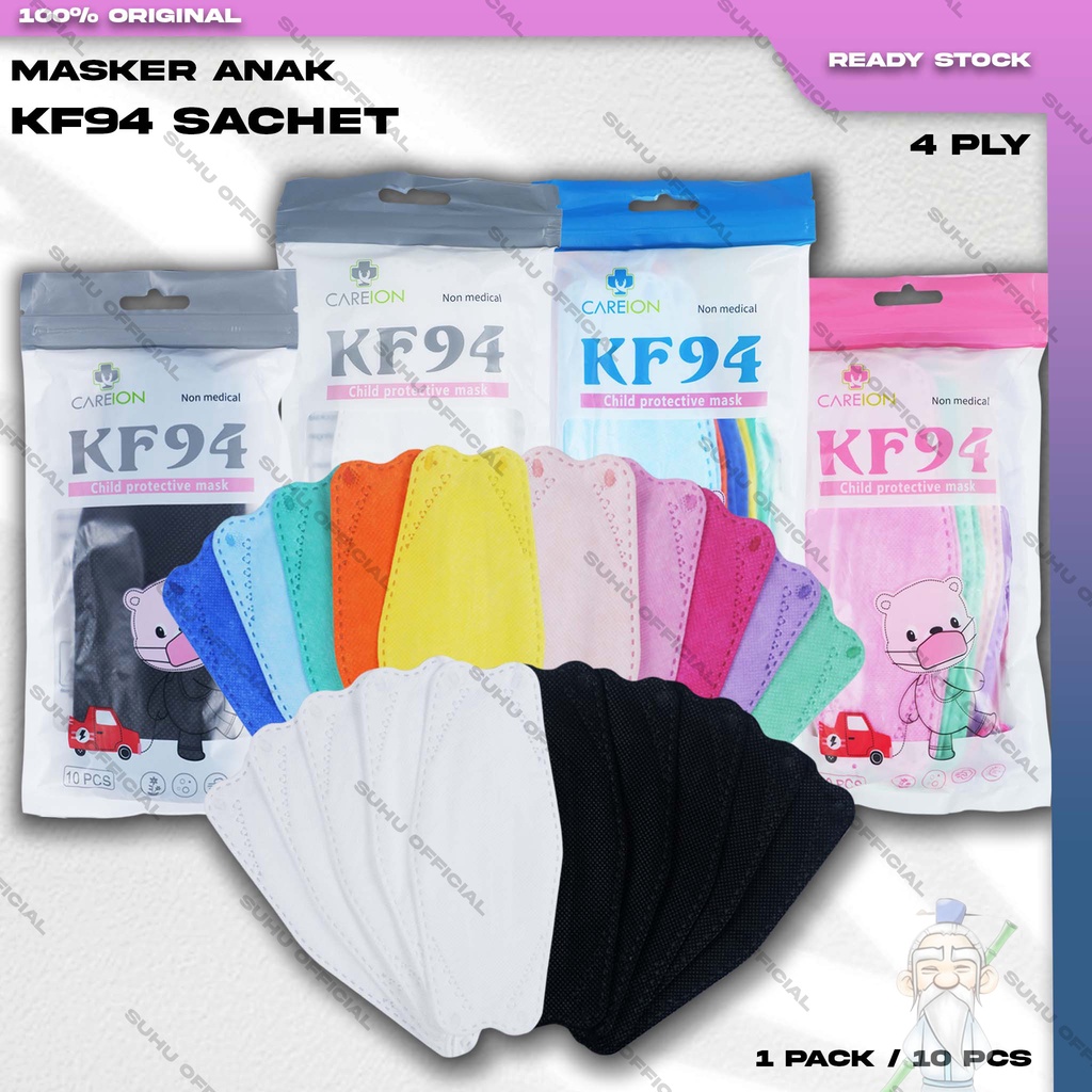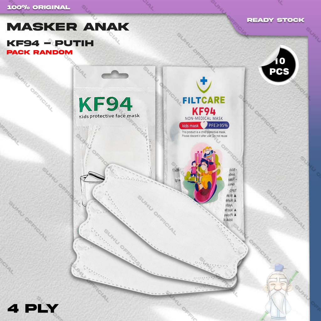 Masker Anak KF94 Sachet 4Ply isi 10Pcs Putih Hitam Abu Warna KF 94 4 Ply Earloop Kemenkes