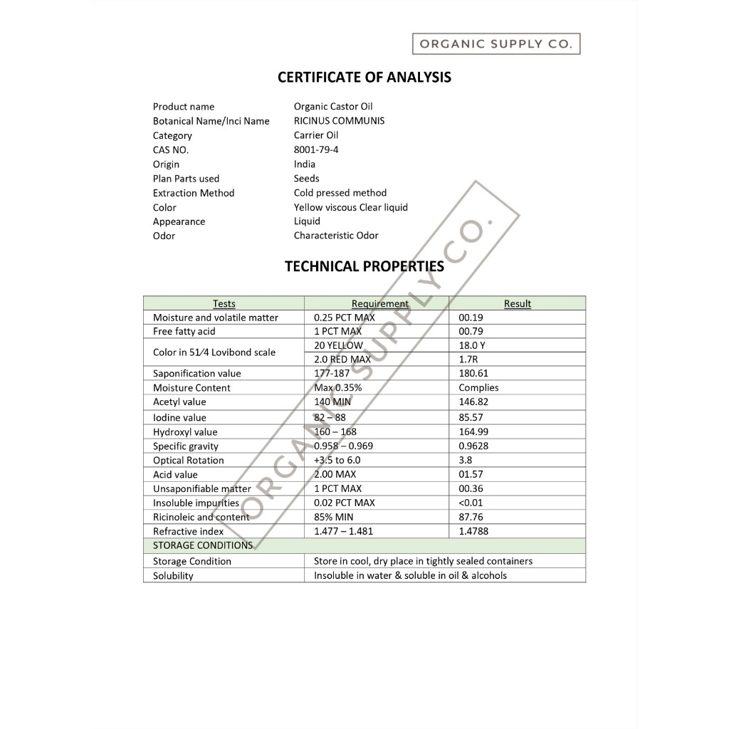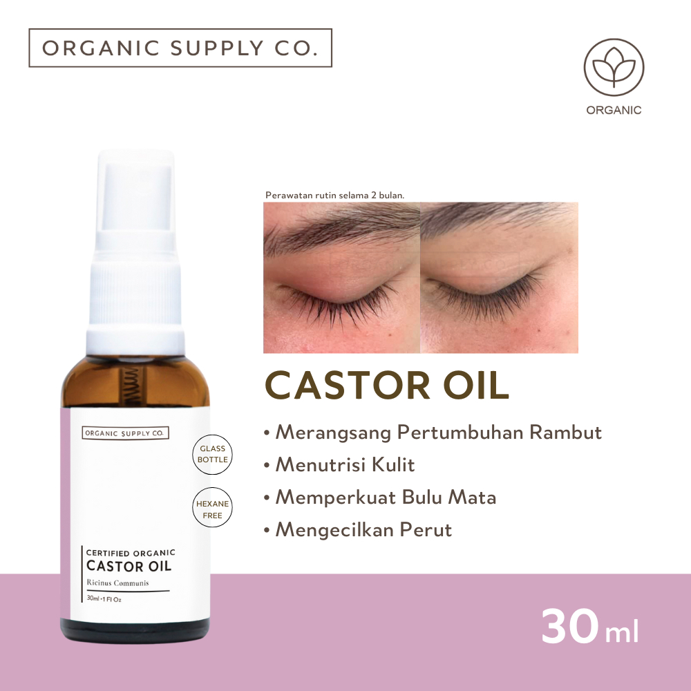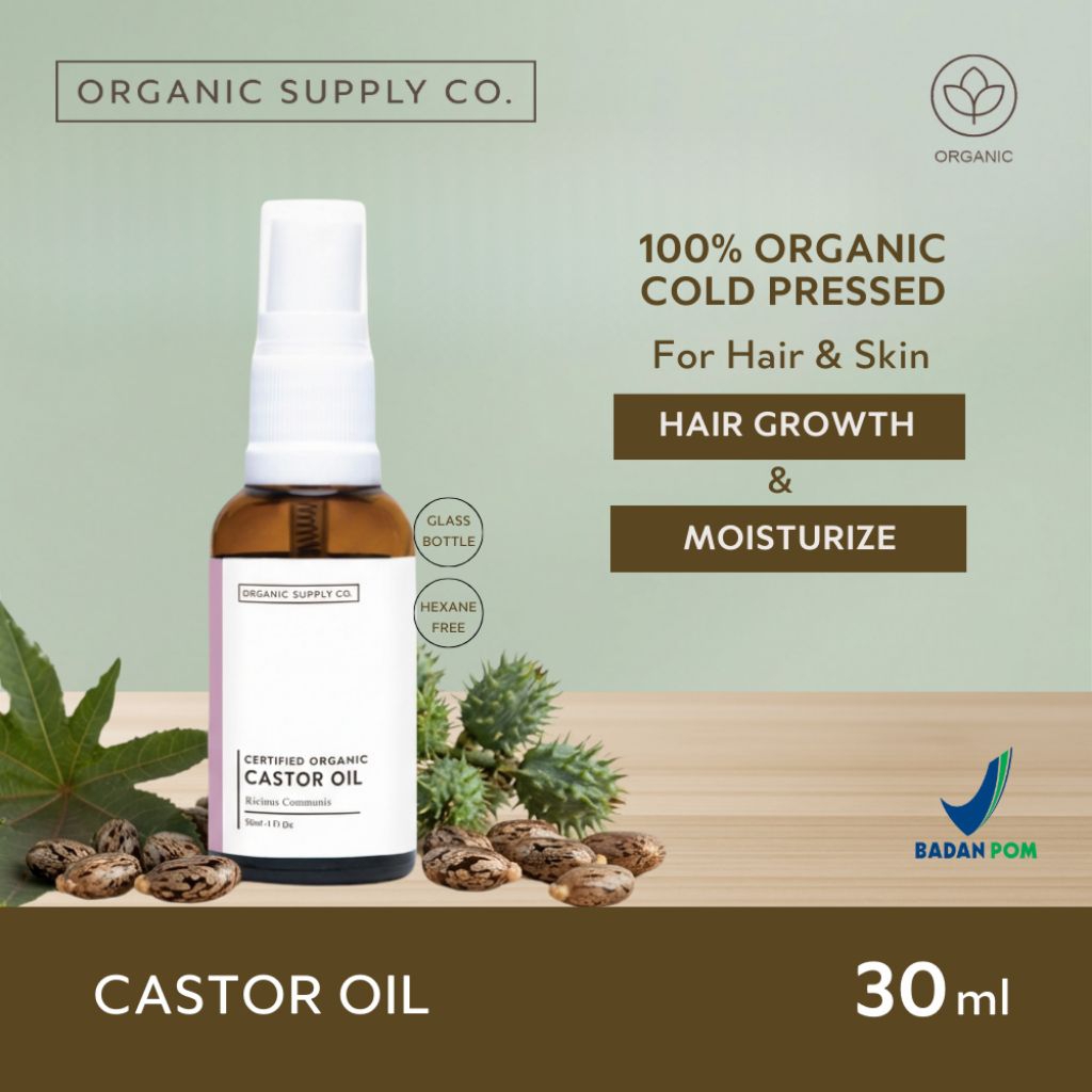 Castor Oil Carrier Oil Organic | Minyak Jarak Cold-Pressed | Menebalkan Alis & Bulu Mata, Detox, Kerutan, Make Up Remover | Organic Supply Co.