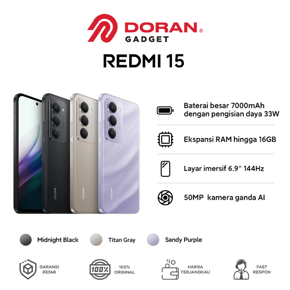 Xiaomi Redmi 15 (8GB/128GB) (8GB/256GB) Baterai besar 7000mAh dengan pengisian daya 33W | Ekspansi RAM hingga 16GB