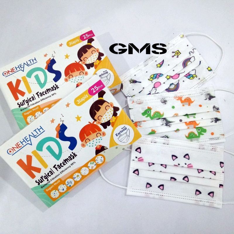 Masker Medis Anak 3 Ply Onehealth Per Box isi 50 Pcs / Surgical Face Mask Kids