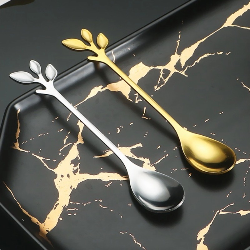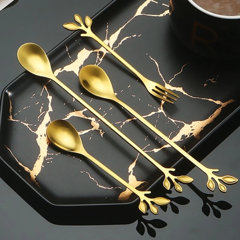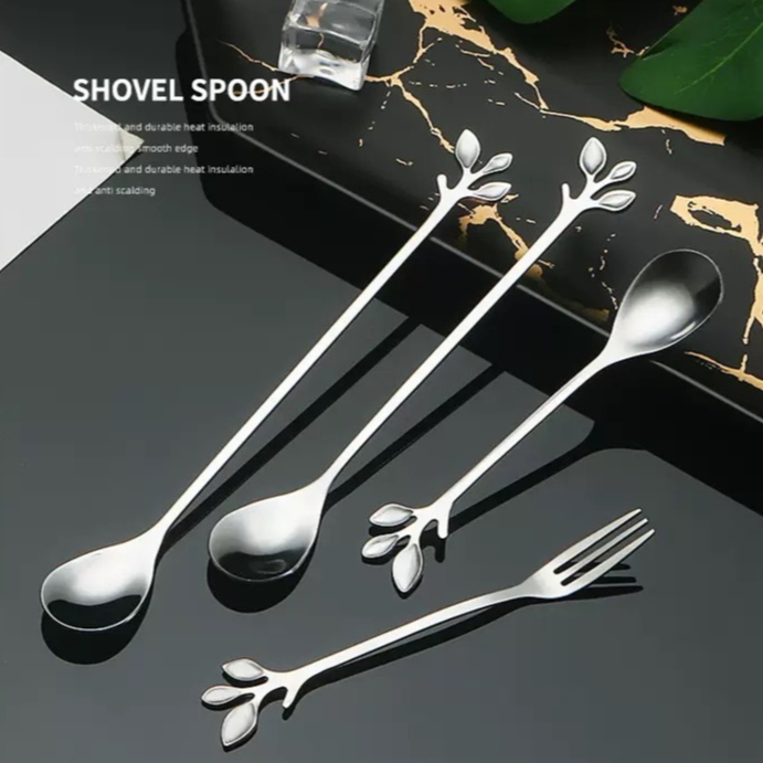 SENDOK GARPU TEH KOPI DESSERT / TEASPOON HANDLE DAUN/ SENDOK GARPU DAUN GOLD