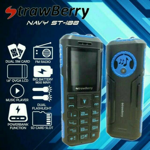 Strawberry ST 188 Navy, Bisa jadi powerbank, BIG Speaker, Dua mata senter Yang terang dan fokus