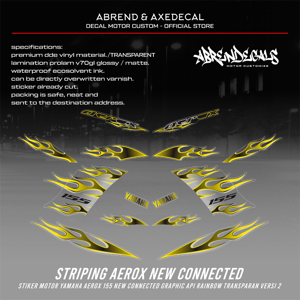 Striping Aerox New Connected Transparan Api Rainbow / Stiker Motor Aerox Baru Grafis Api Custom / Stock Decals
