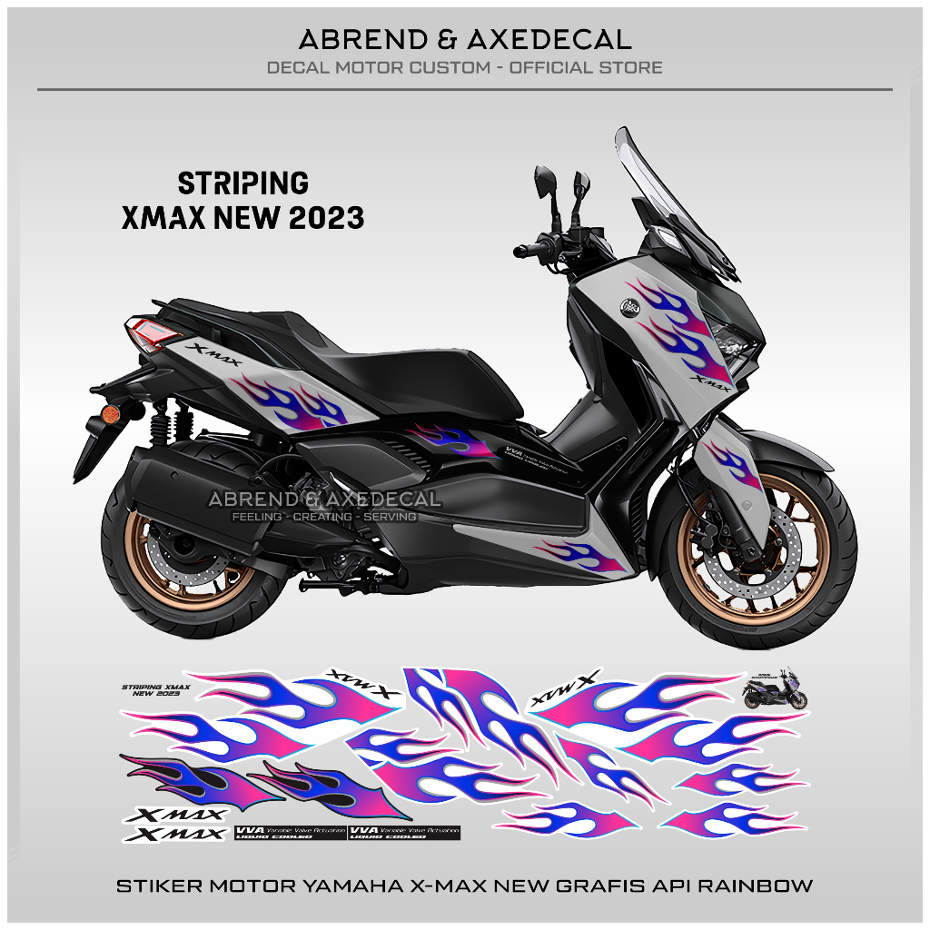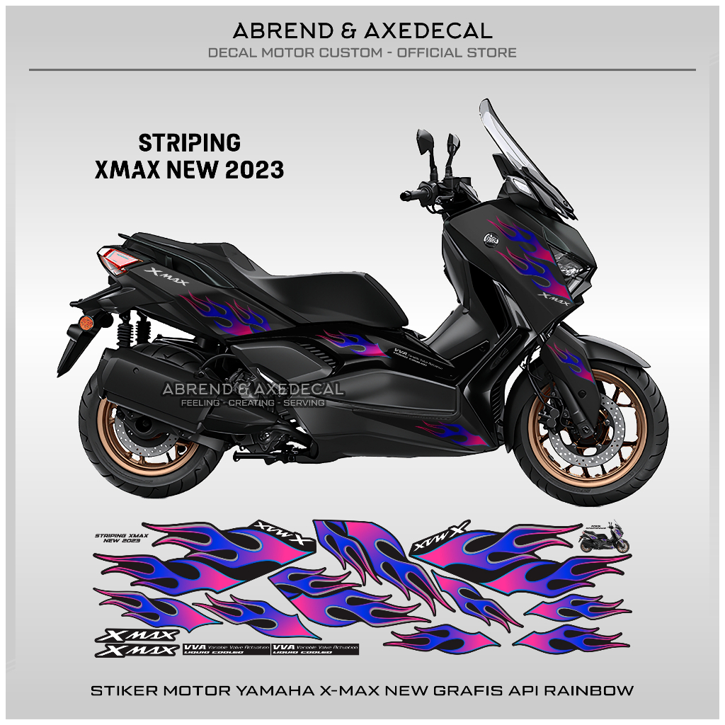 Striping Xmax New 2023 Grafis Api Rainbow / Stiker Motor Yamaha X-Max Baru Design Custom / Stock Decals