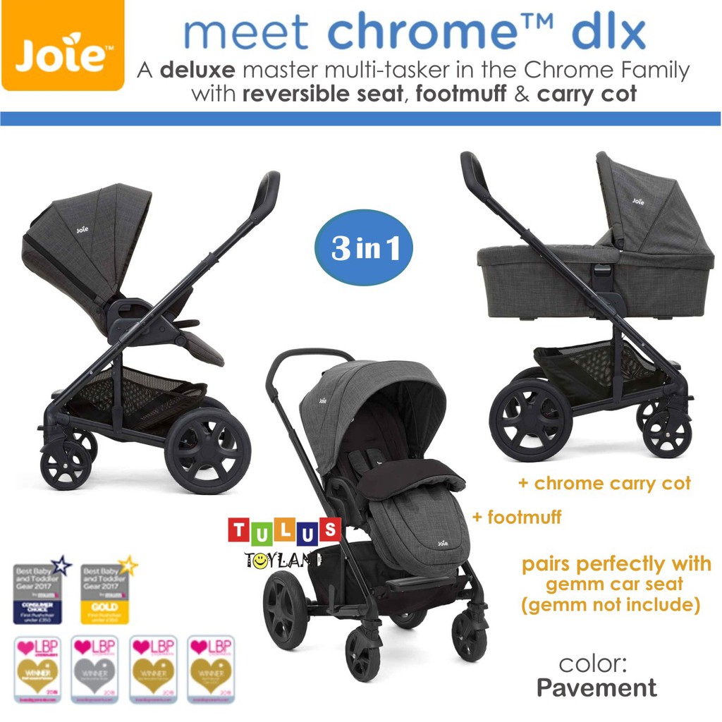 Stroller Joie Chrome DLX 3 in 1 carry cot 4 in 1 gemm car seat kereta bayi premium deluxe reversible hadap ibu